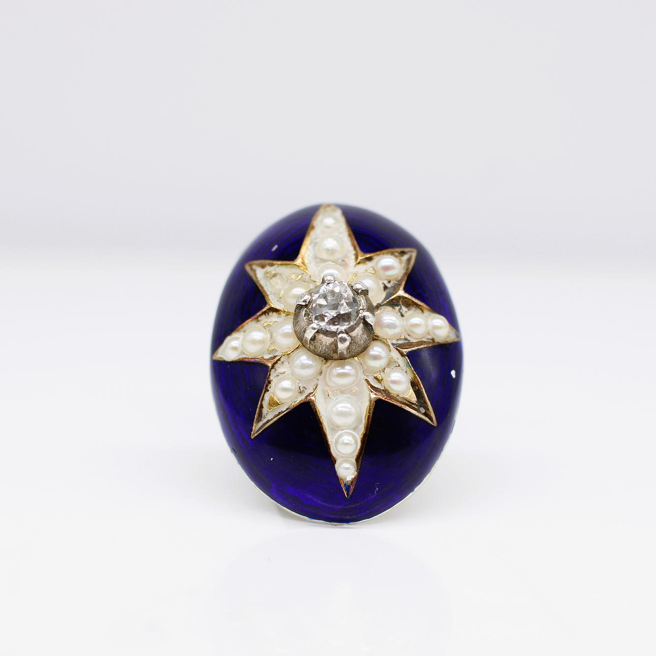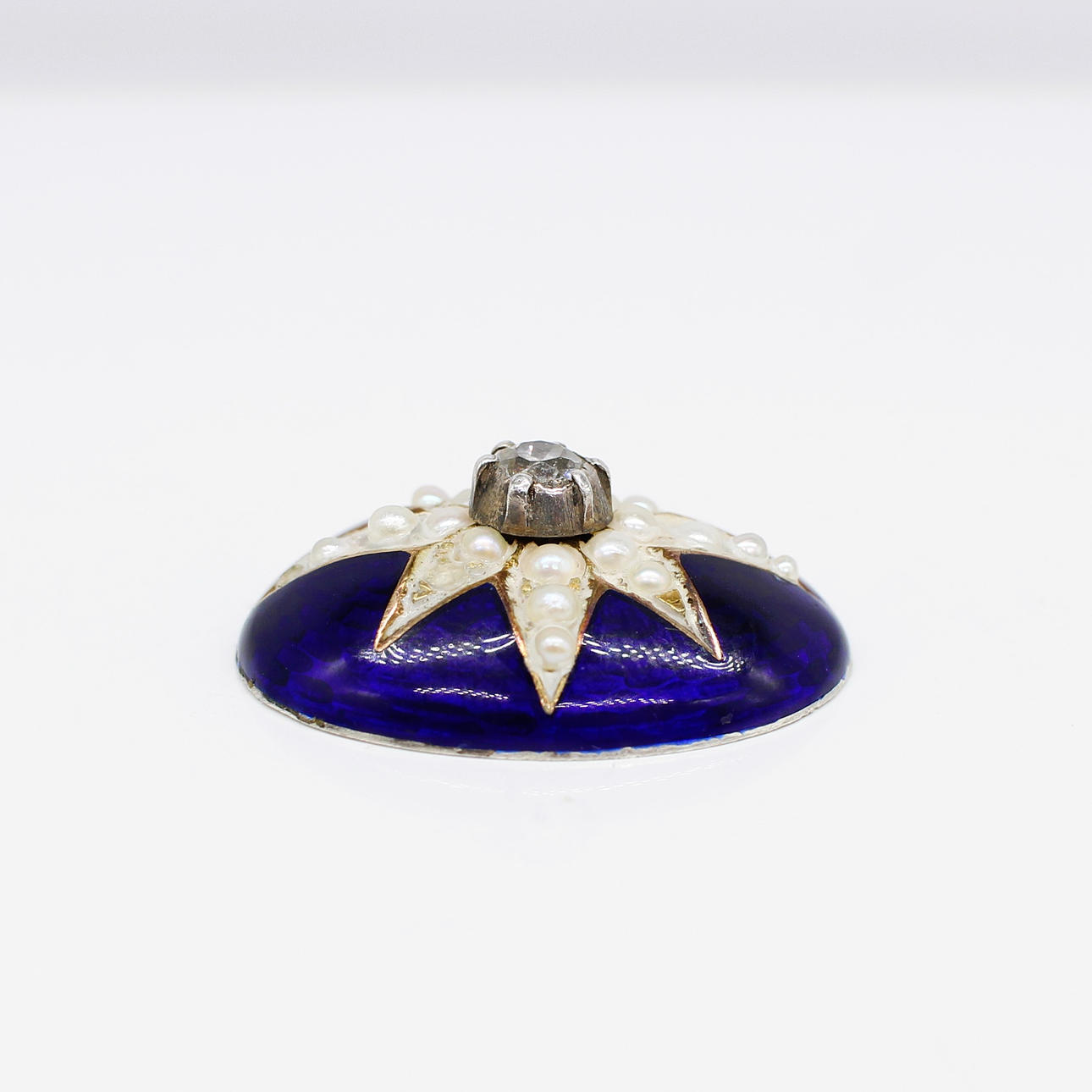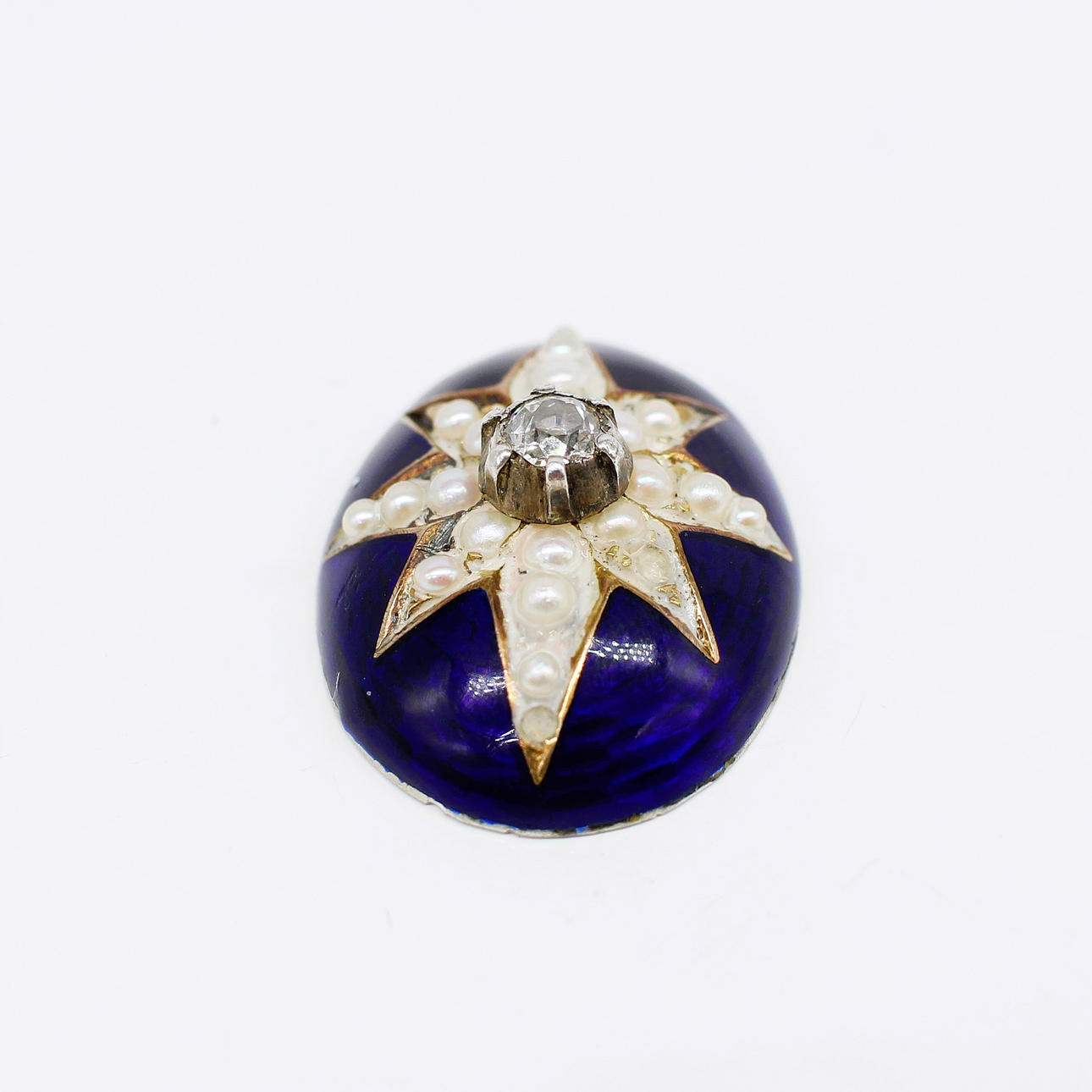 An Original Georgian Antique Blue Enamel, Star Burst Design, Seed Pearl And Old Cut Diamond Set Brooch/Pendant Centre.
