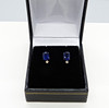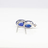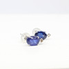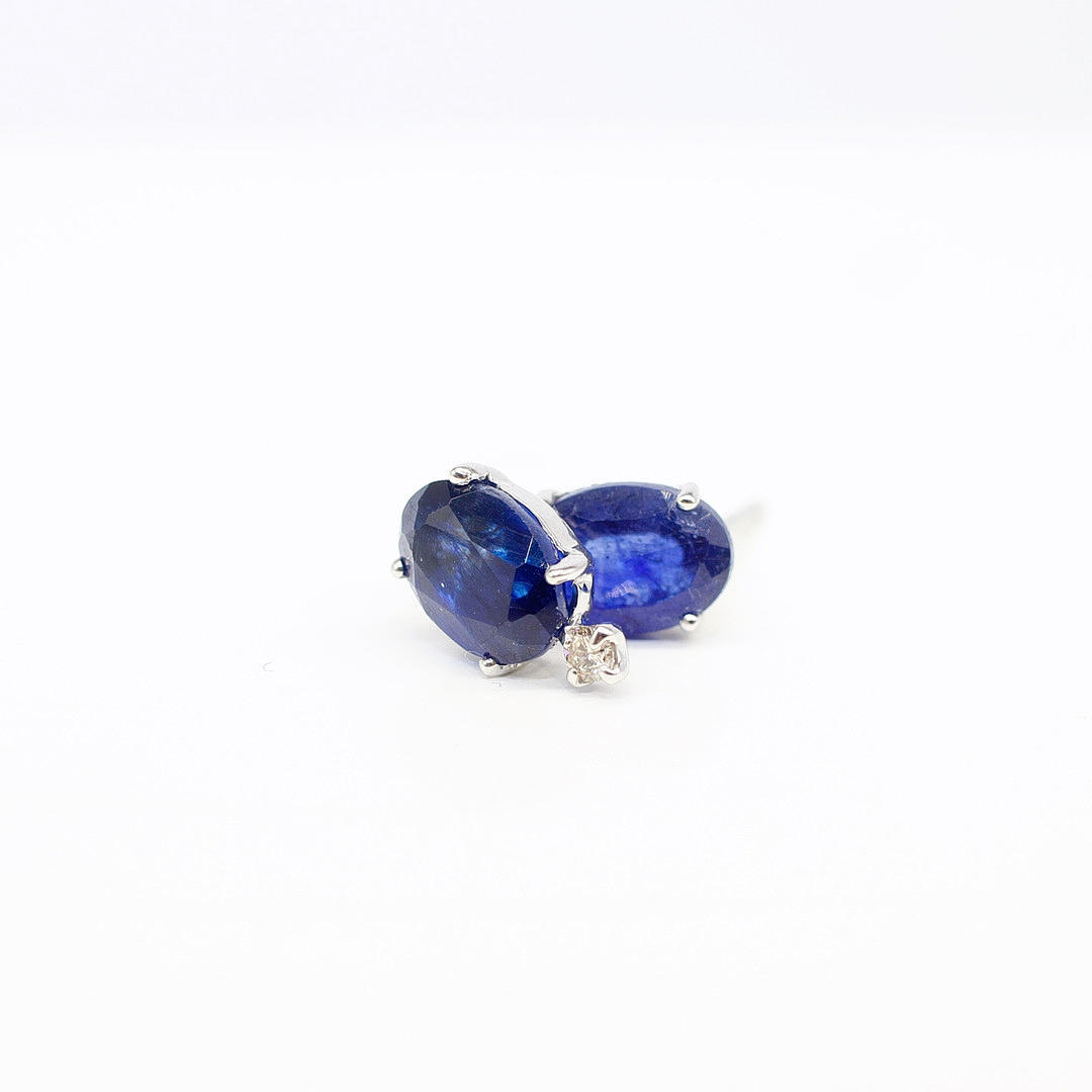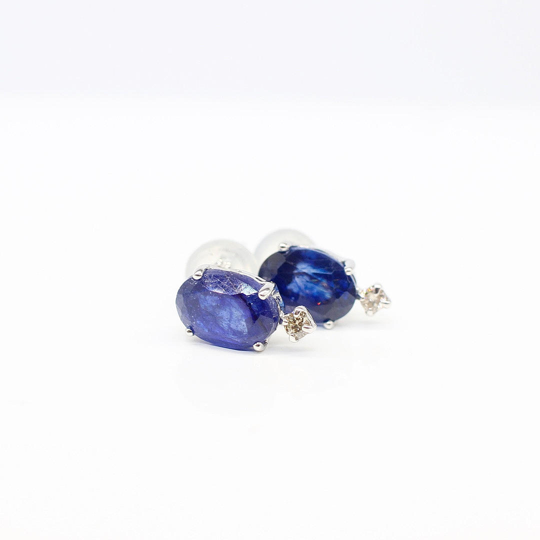 A Pair Of 18ct White Gold Stud Earrings Set With Oval Sapphire And Round Brilliant Cut Diamonds Below.