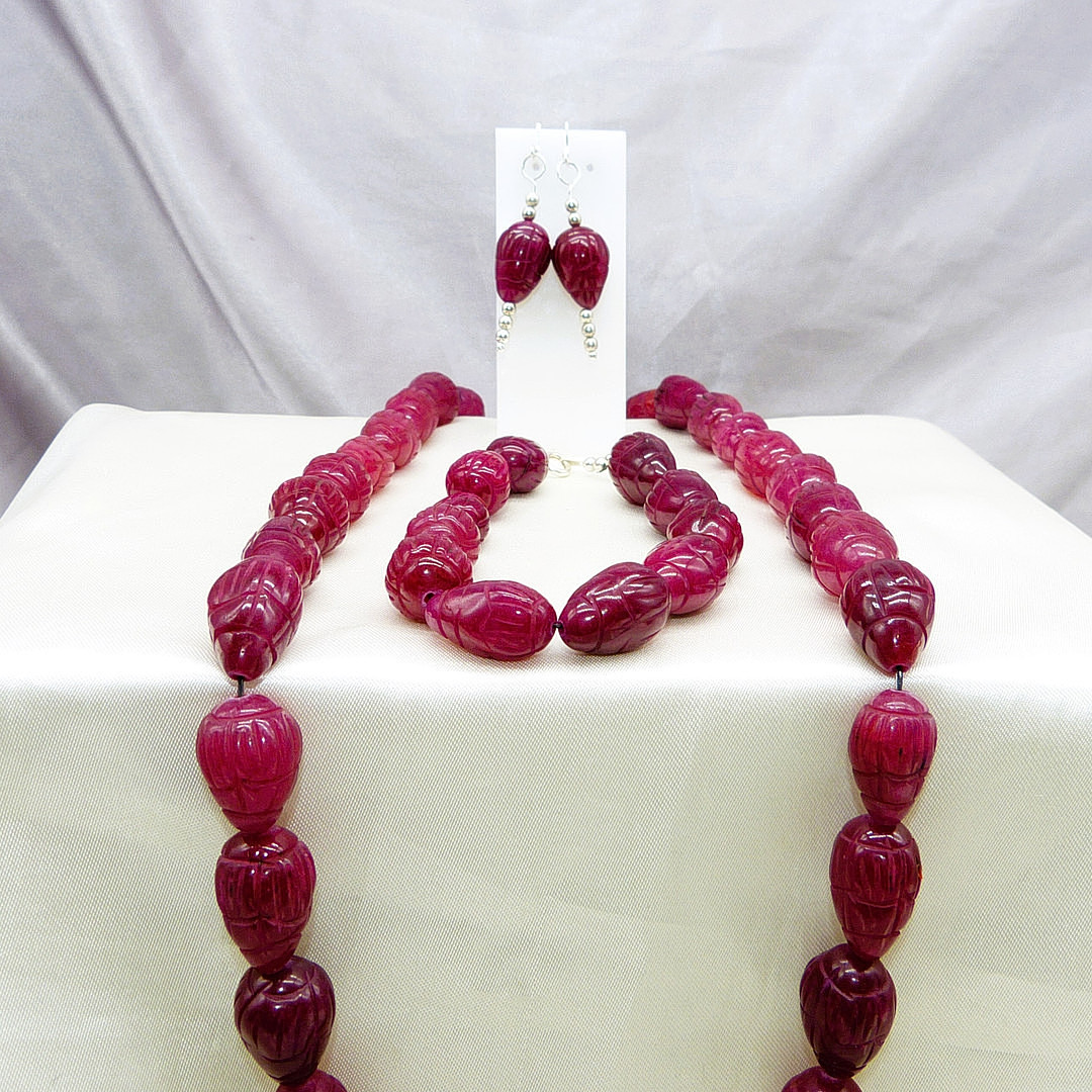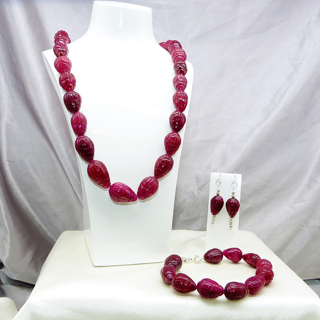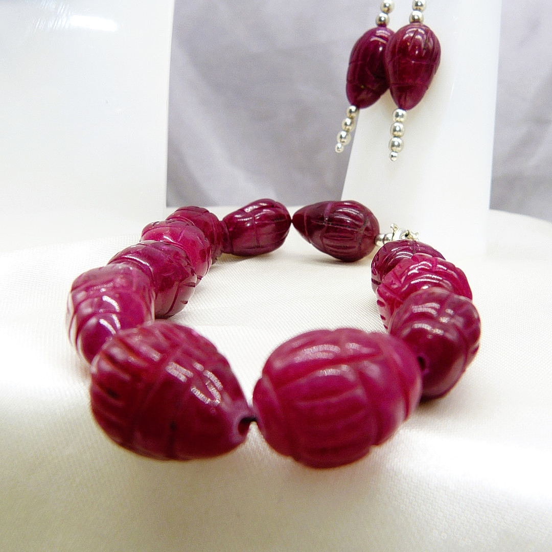 4885091. RECONSTITUTED RUBY JEWELLERY SUITE.