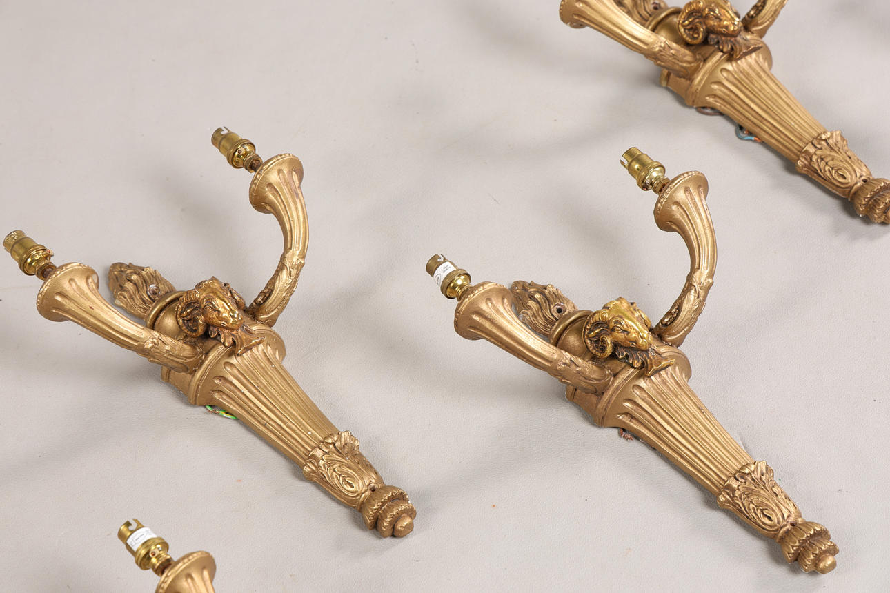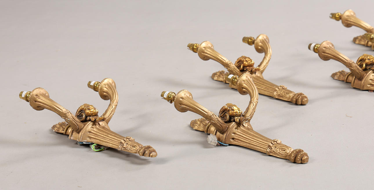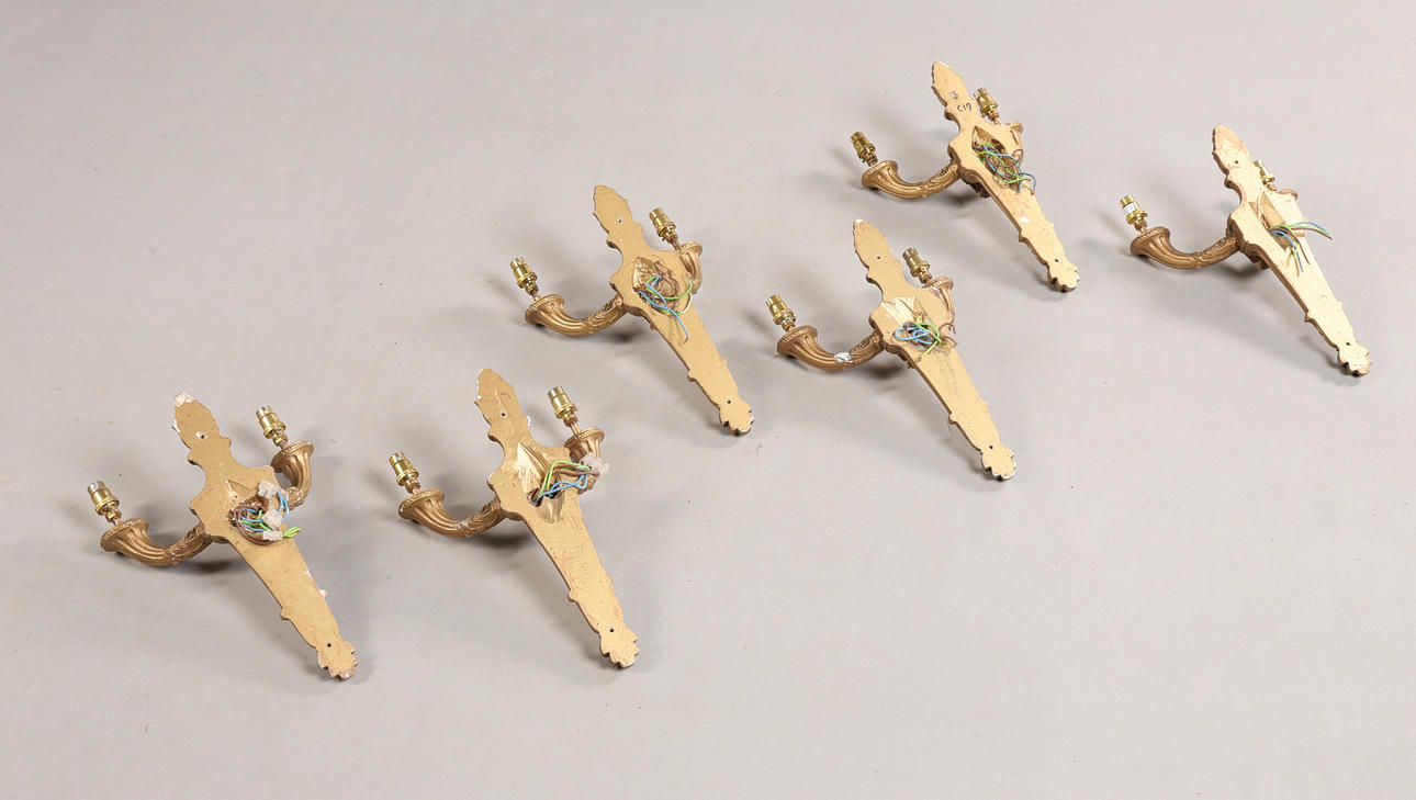 SIX 20TH CENTURY GILT WALL SCONCES (6).