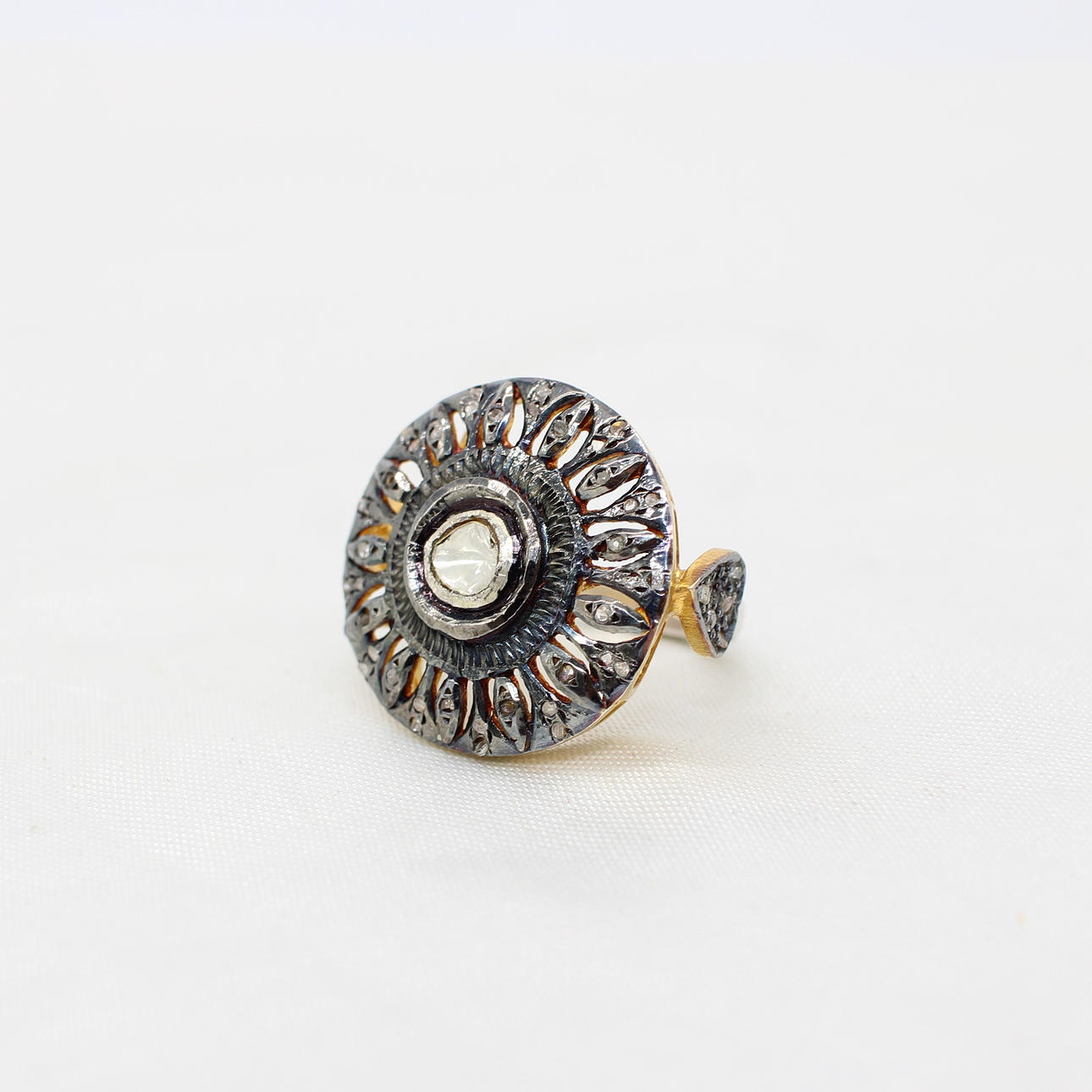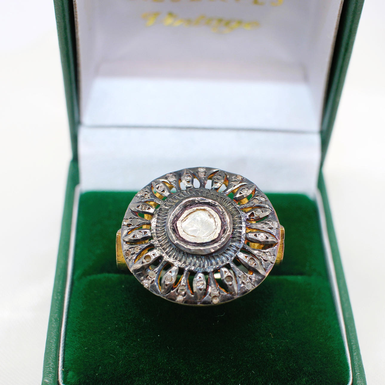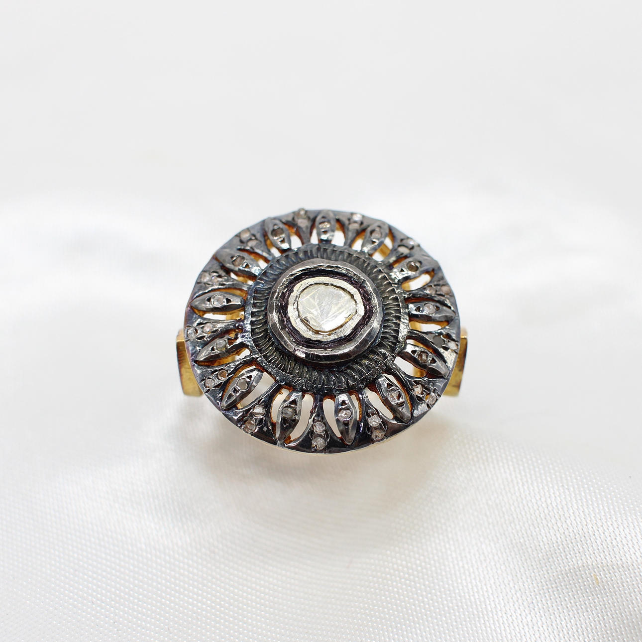 A Large Silver (Unmarked But Tested As Silver) Dress Ring Set With Slice Diamonds.