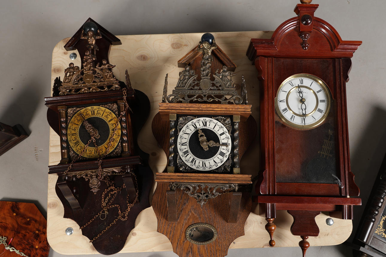 To include four wall clocks and three mantel clocks, the largest 68cm long approx. (qty).