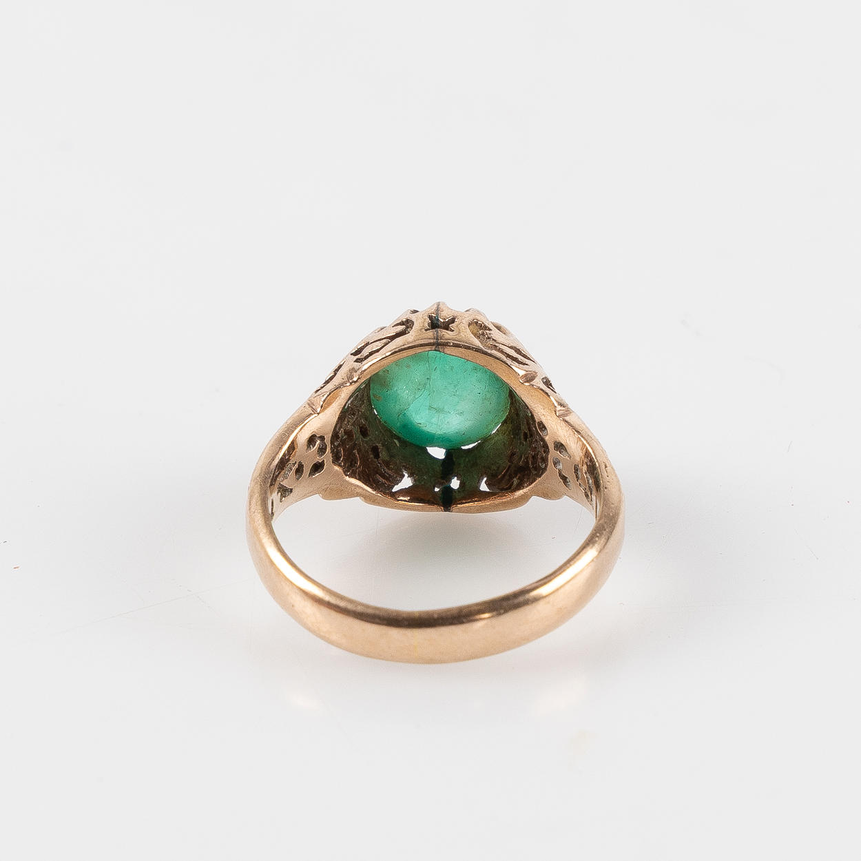 4885552. RING, 14K gold with cabochon-cut emerald.