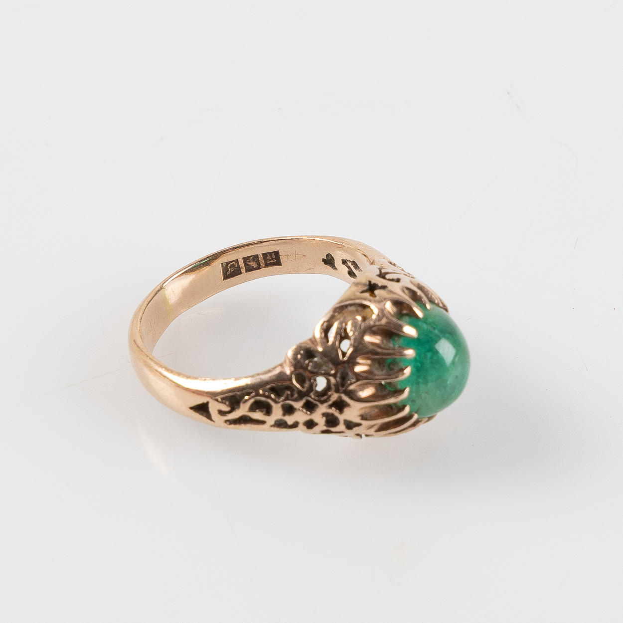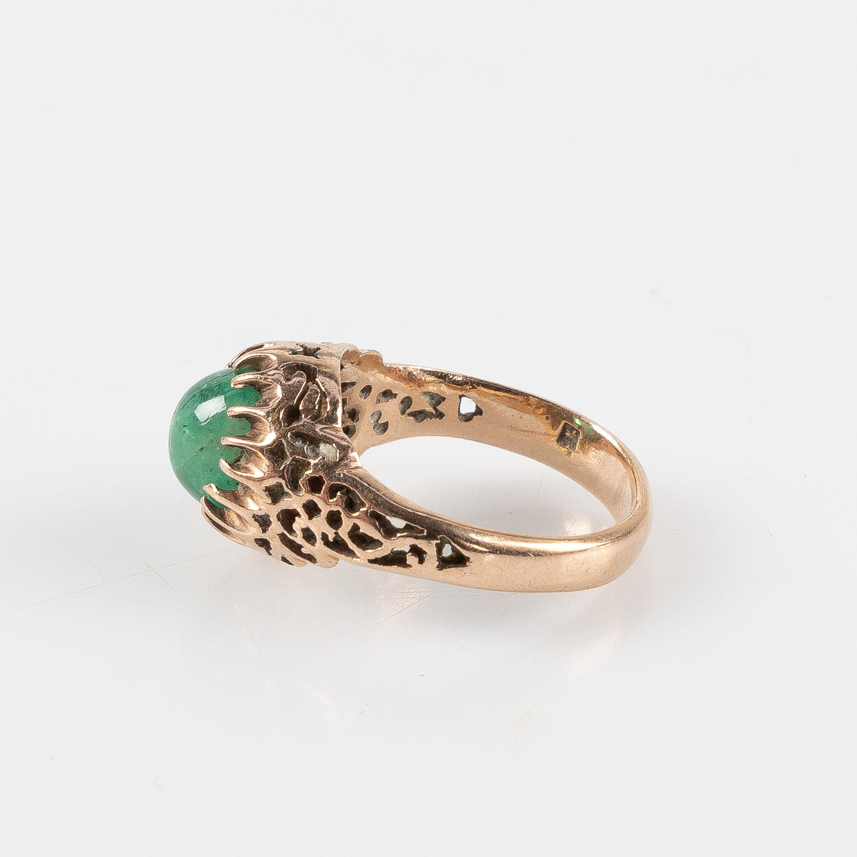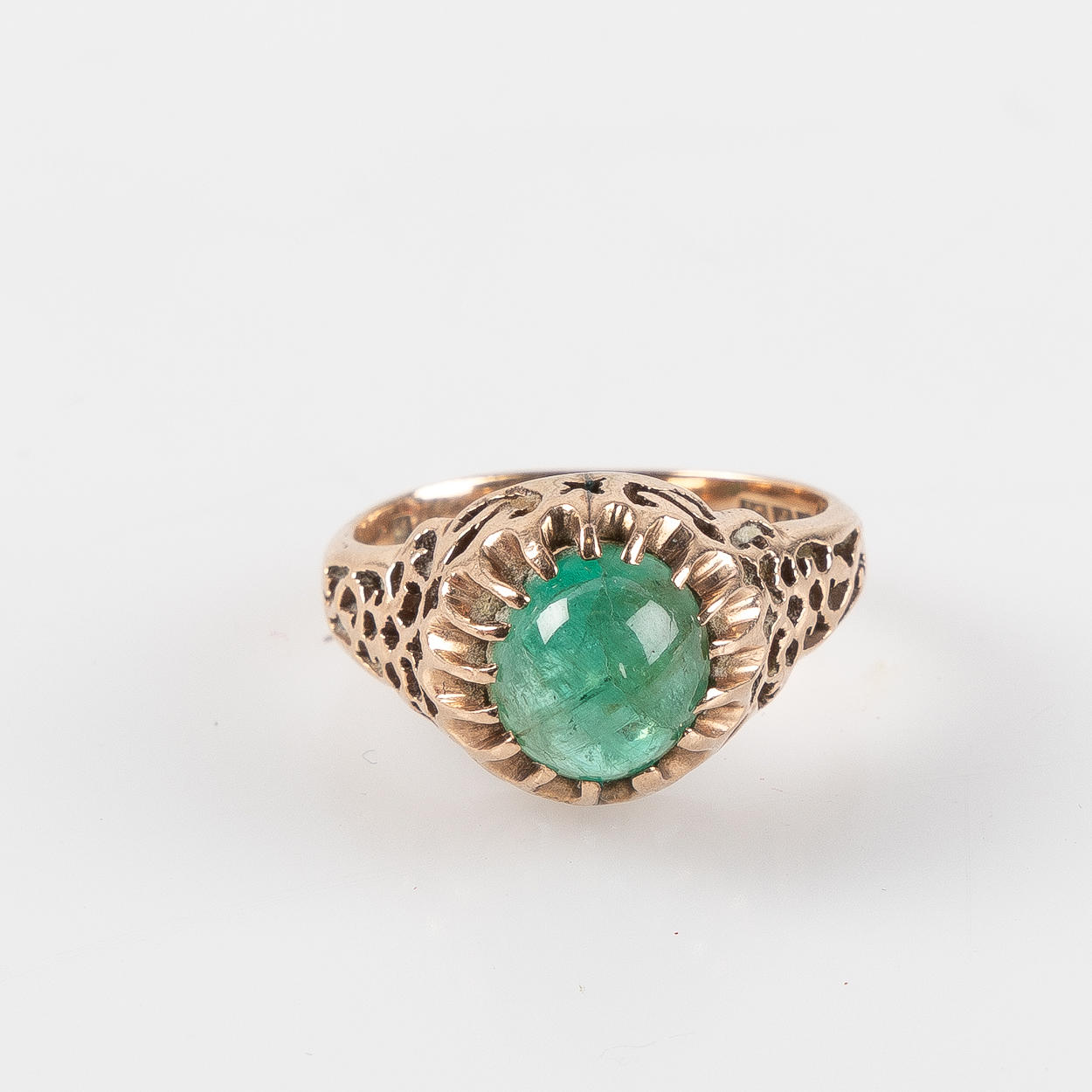 RING, 14K gold with cabochon-cut emerald.
