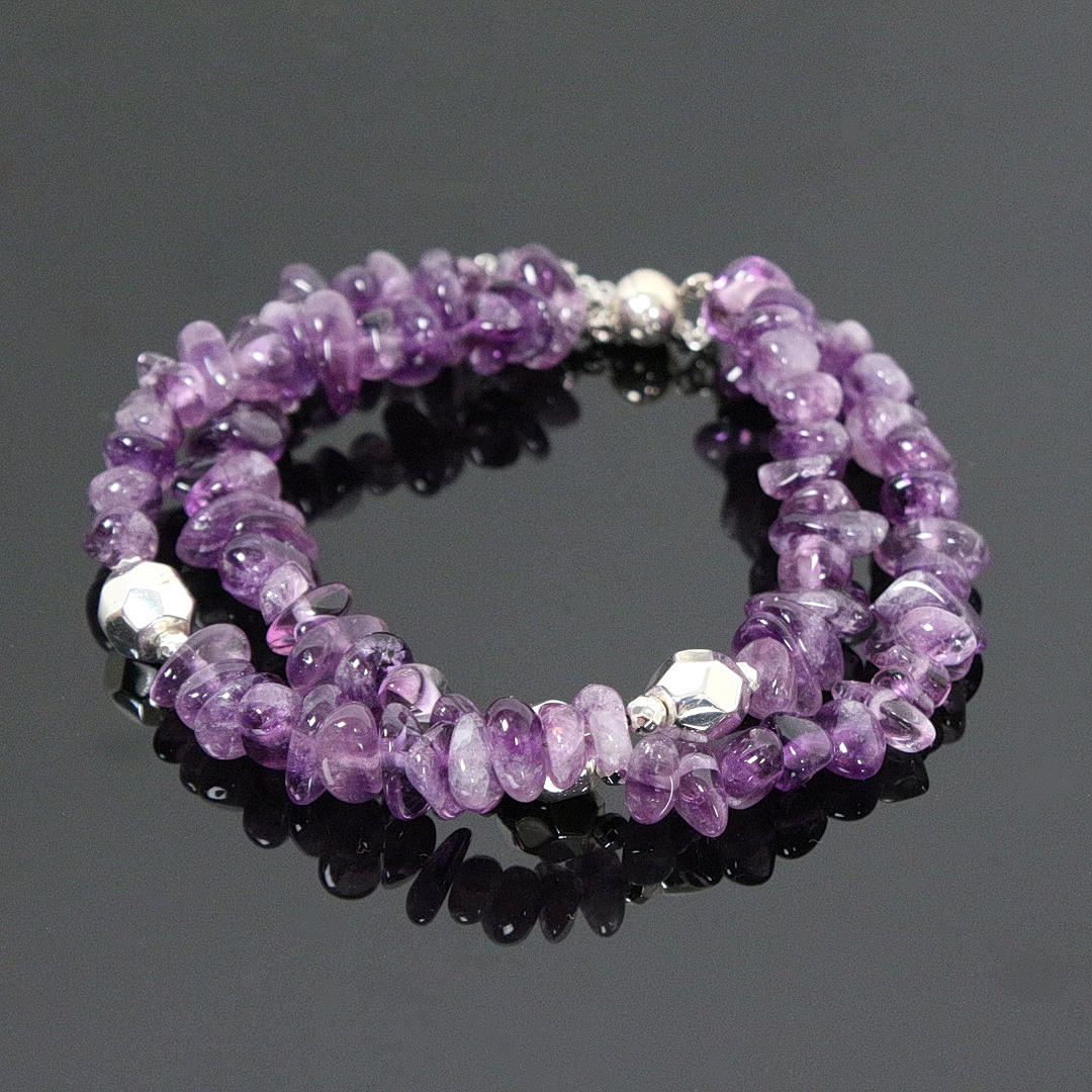 2-rhg bracelet with amethyst, 925 silver magnetic clasp with safety chain