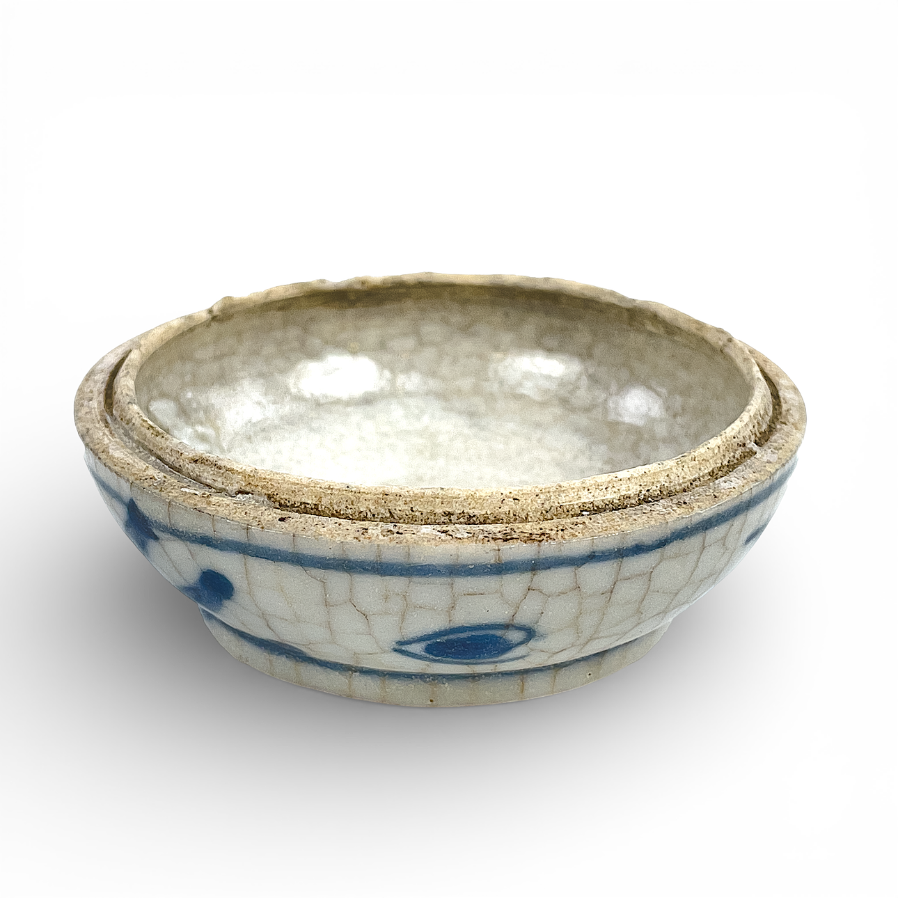 Decor in underglaze blue of birds and flowers. Height approx. 4 cm, diameter approx. 7 cm.