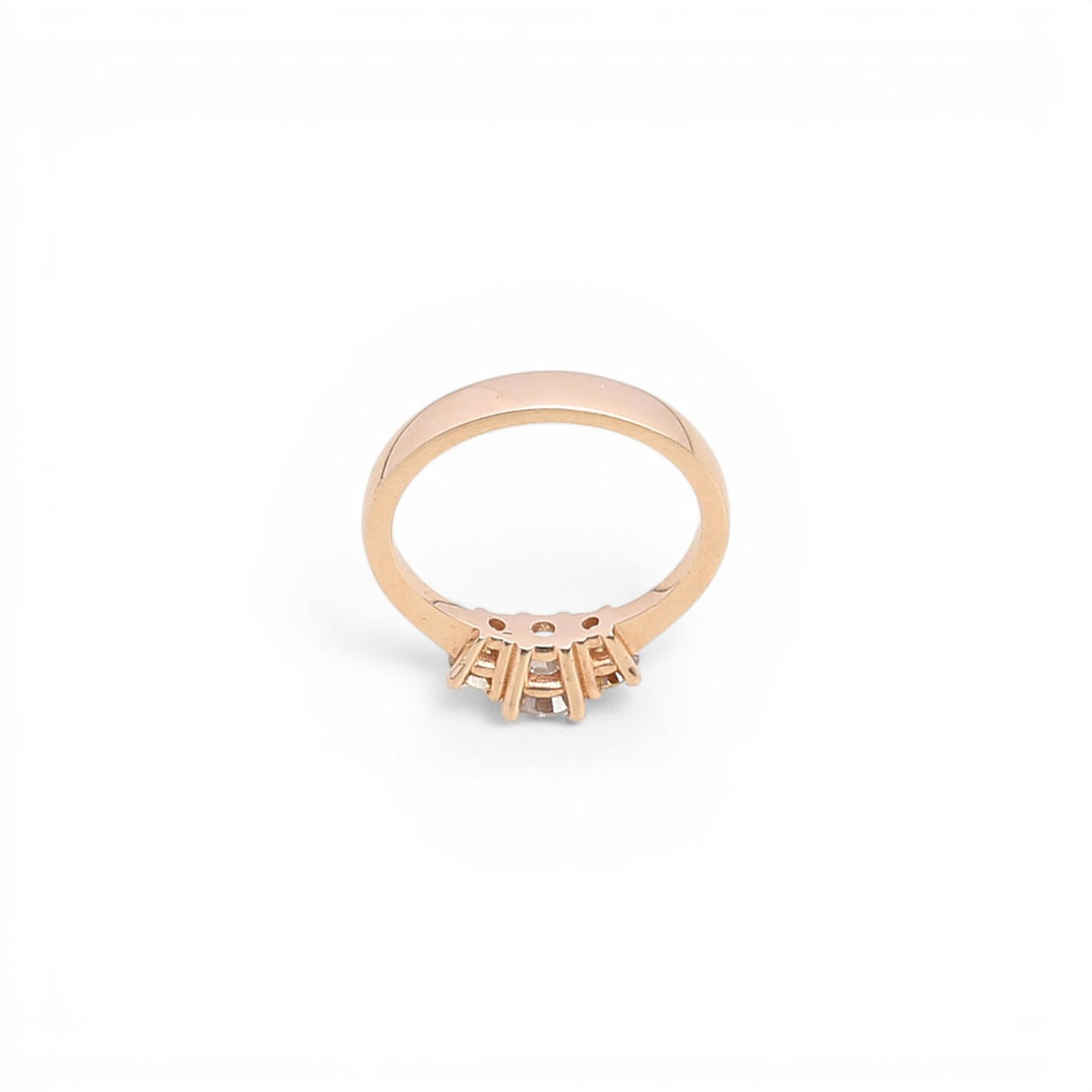 14K rose gold and brilliant cut diamonds, 0.92 cts total. Size 14/54. 3.7 gr.