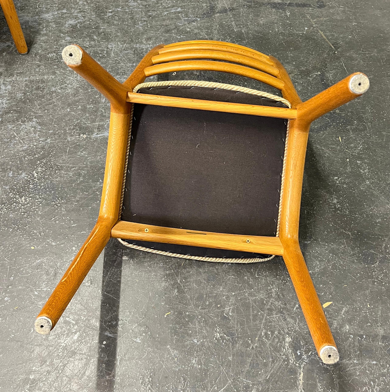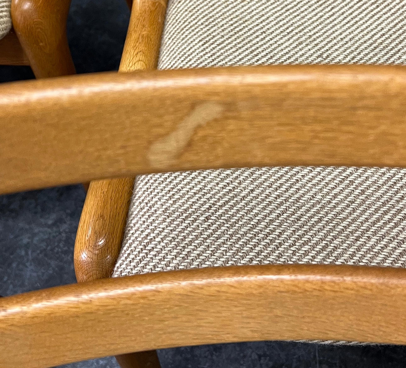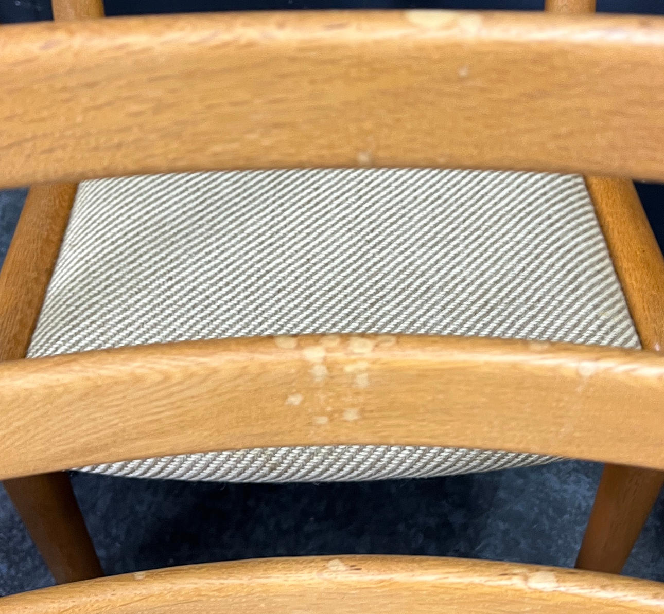Seat with textile upholstery.