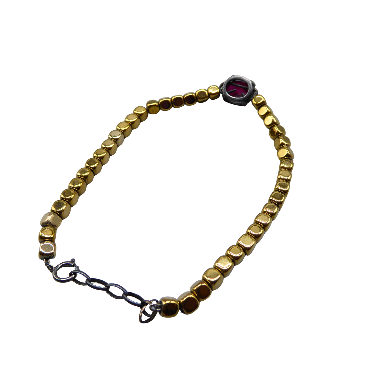 HEMATITE BRACELET WITH A NATURAL RUBY.