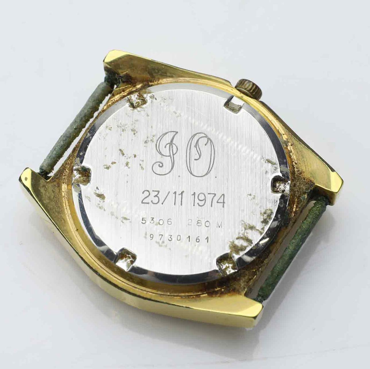 Gold on steel Date window Case No 5306, 280W, 9730161 37x34 mm.