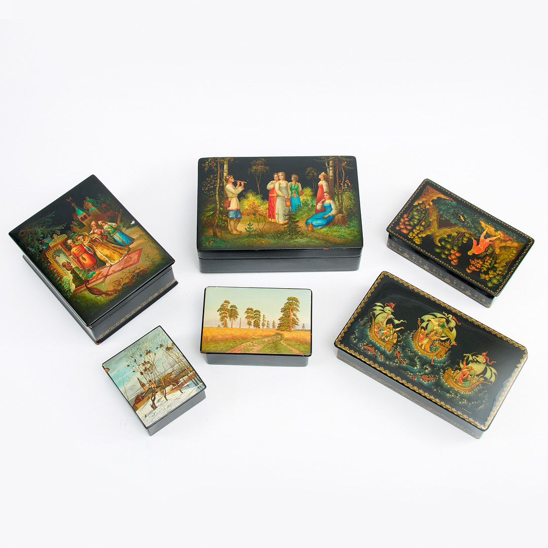 4886983. LACQUER BOXES, Russia, 20th century, 6 pcs.