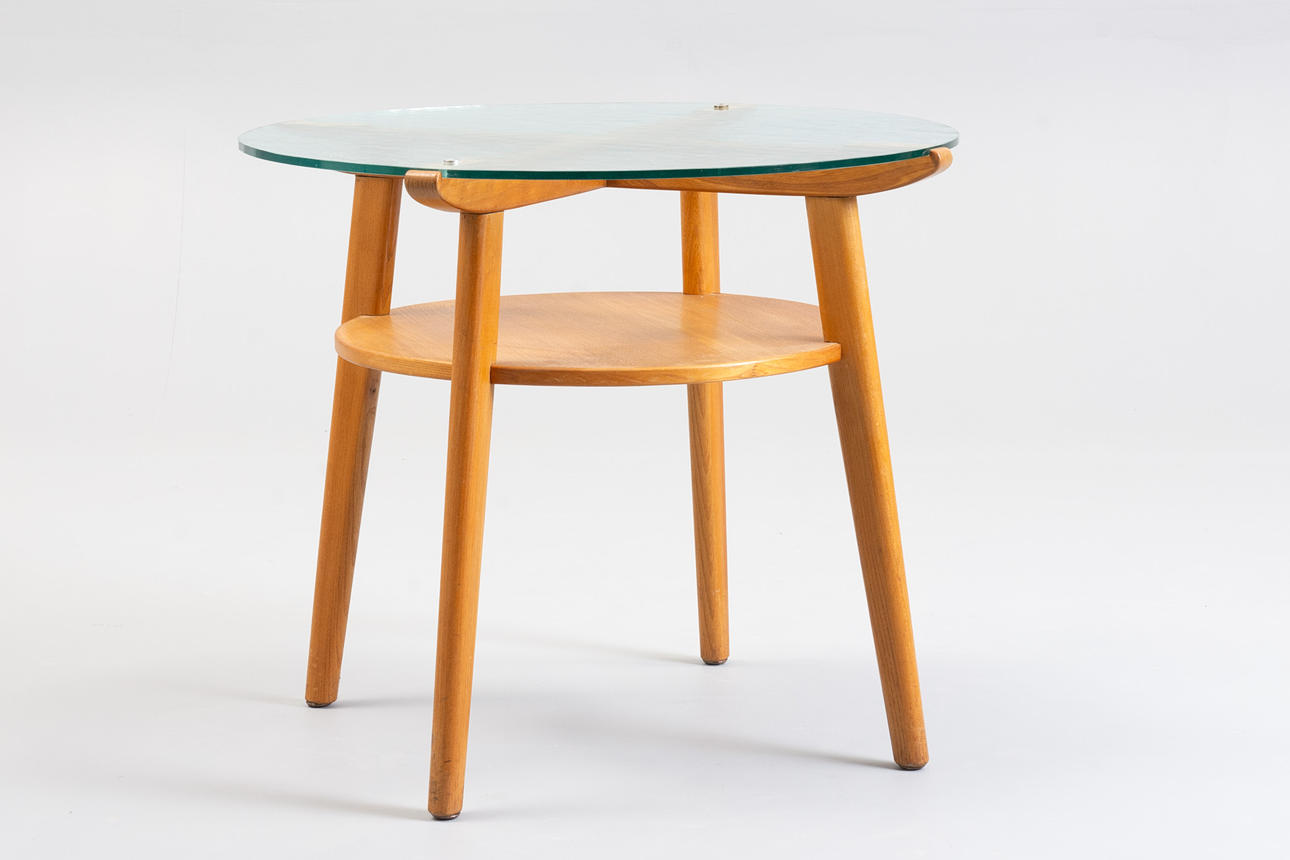 Coffee table/side table with glass top and frame in beech. Mid 1900s.