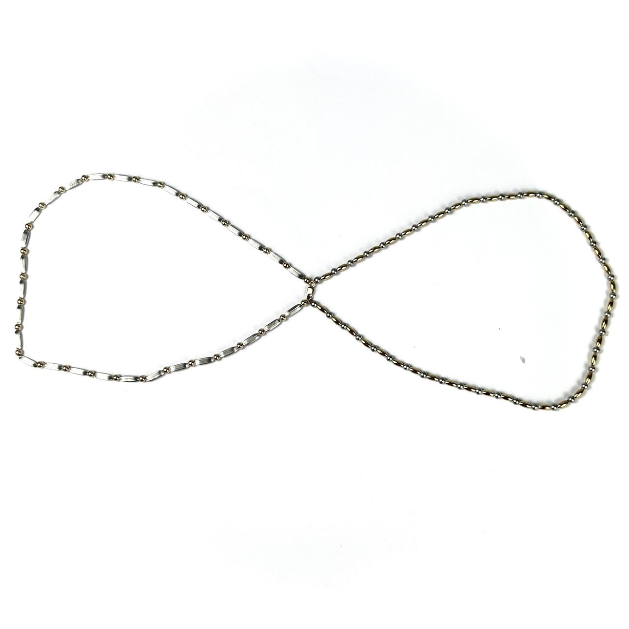 4888539. TWO TONE BEAD NECKLACE ON 14CT GOLD CLASP.