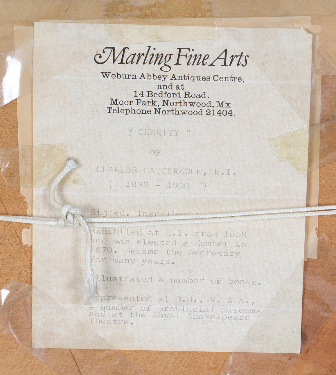 Provenance: Marling Fine Arts, 14 Bedford Road, Moor Park, Northwood.