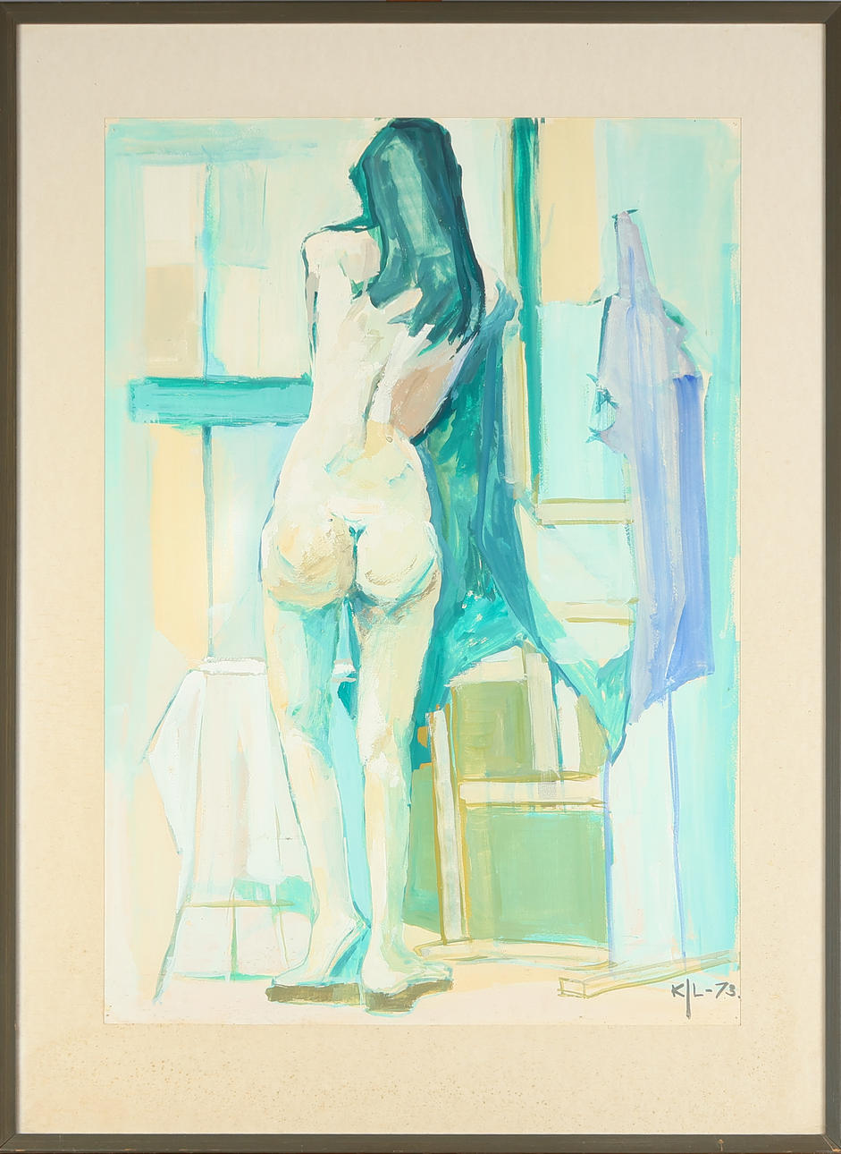 Unknown artist, model studio, gouache on paper, signed and dated 1973. H. 70 x 49 cm, framed 89 x 65 cm.