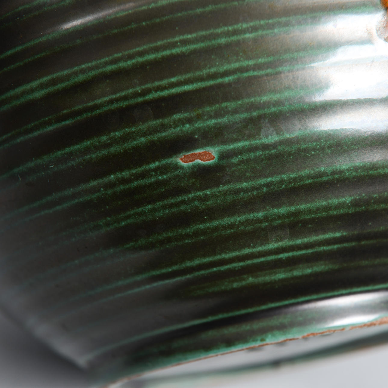 Earthenware with slightly grooved decor. Height 20,5 cm.