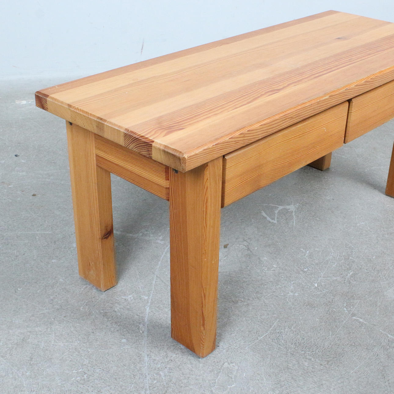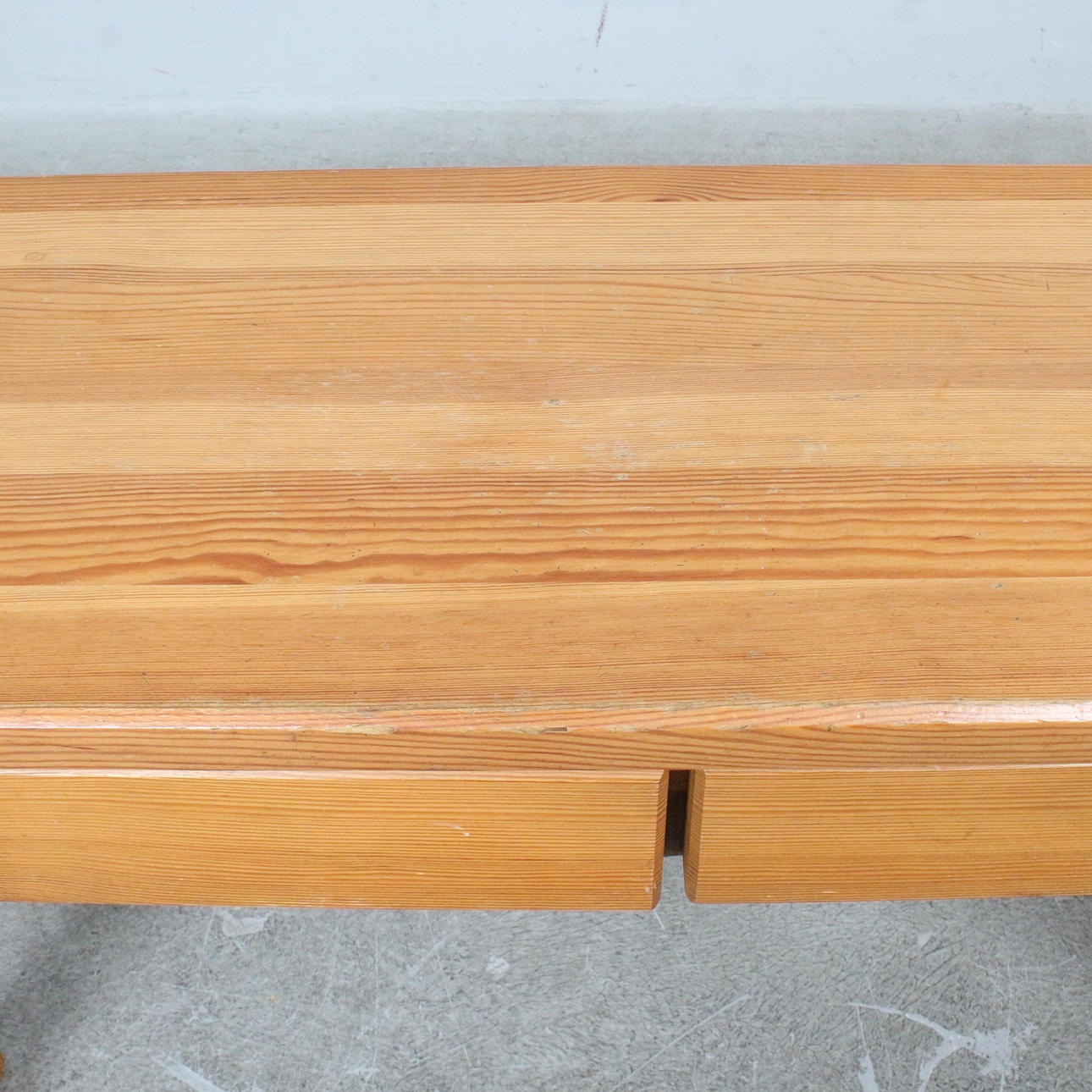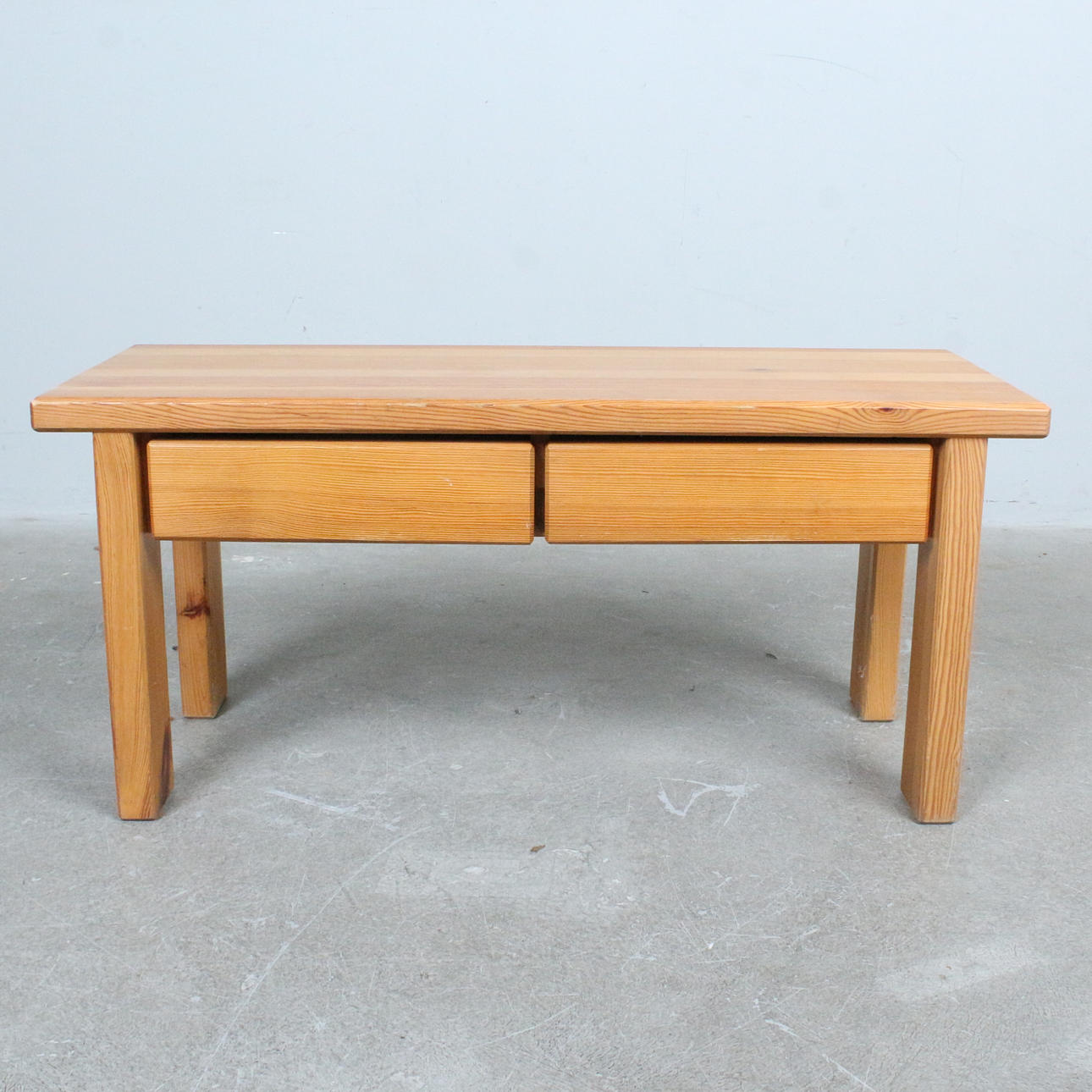 Pine bench with two drawers.
