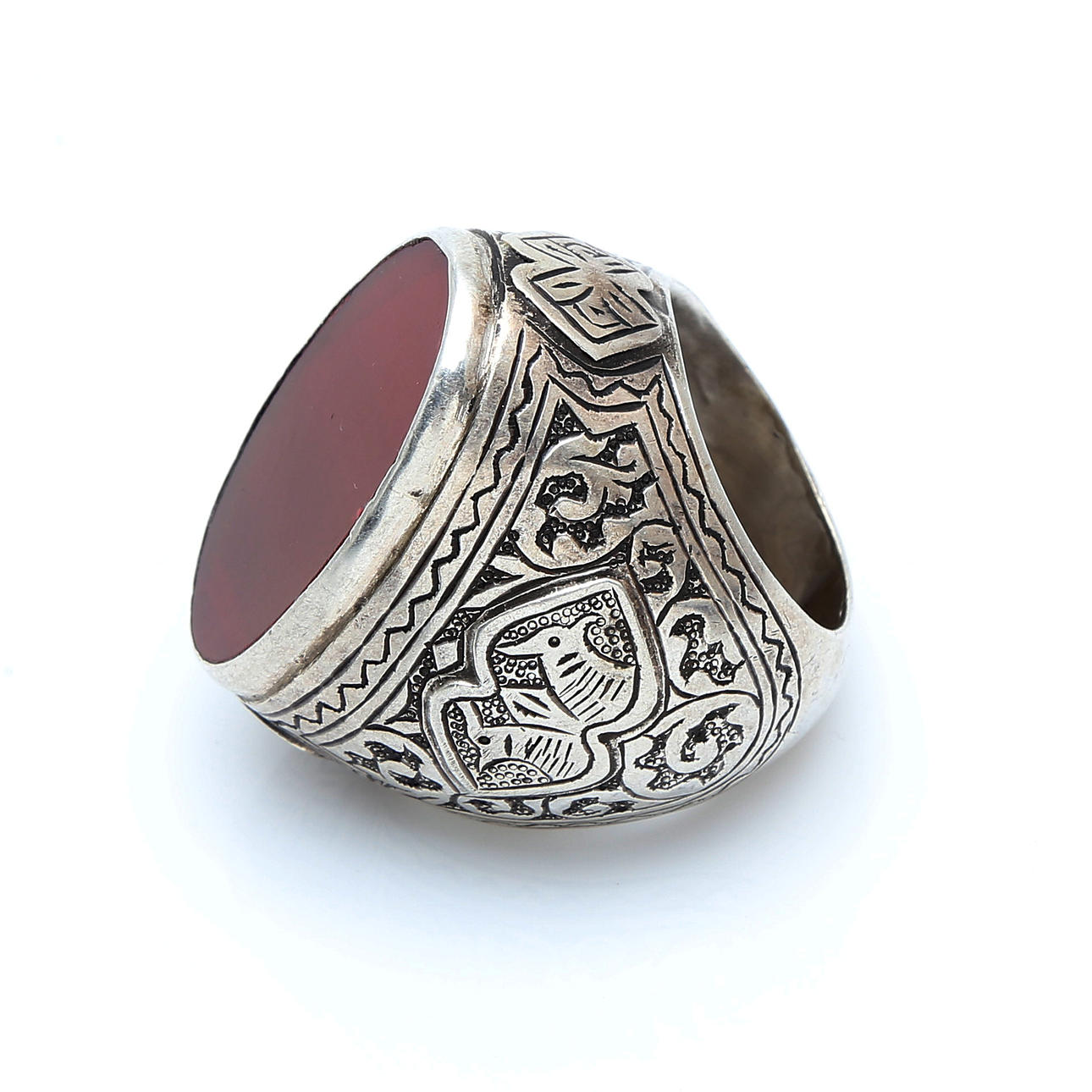 4890629. Turkish ring in silver with agate simile, 20th Century.