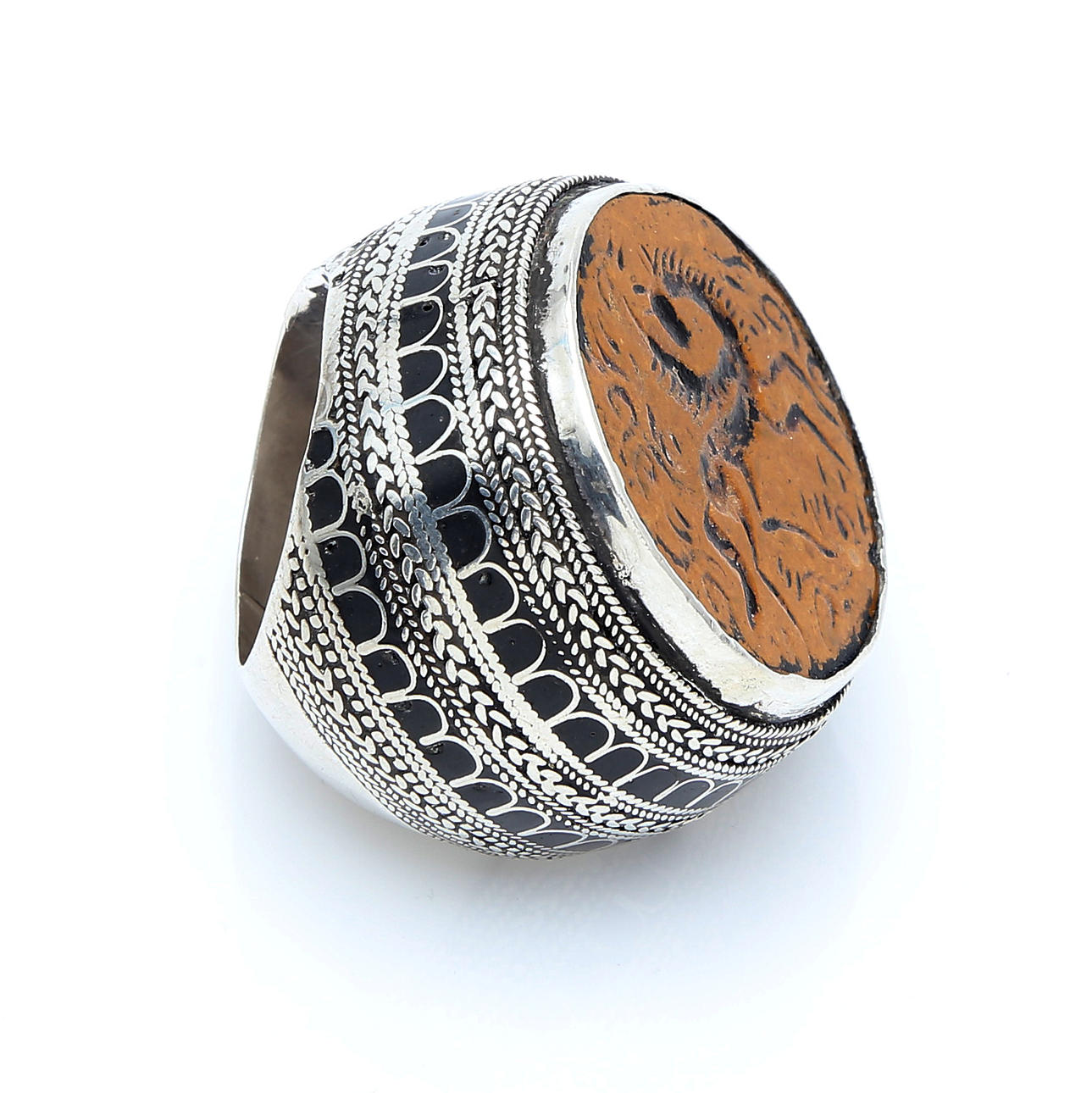4890660. Turkish ring in silver and probably agate, 20th Century.
