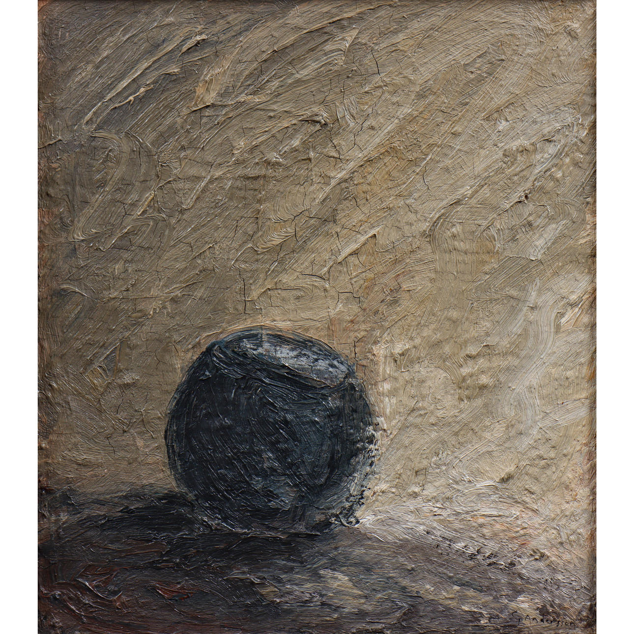 GORDAN ANDERSSON “KRUKAN” OIL ON PANEL, SIGNED, TEXT ON VERSO.
