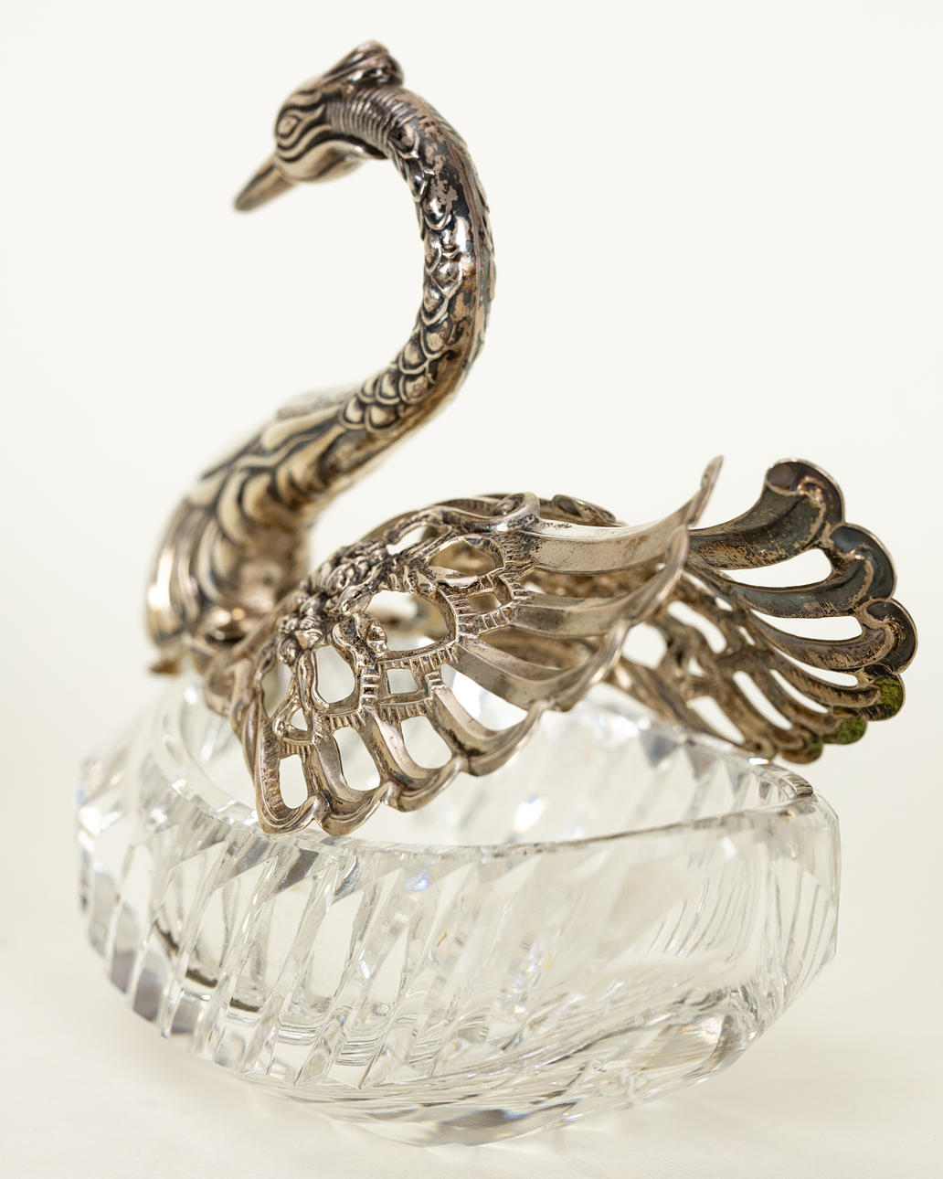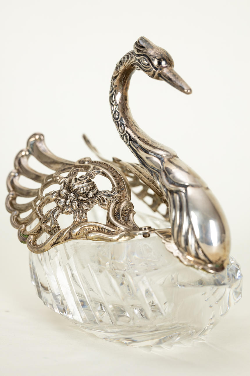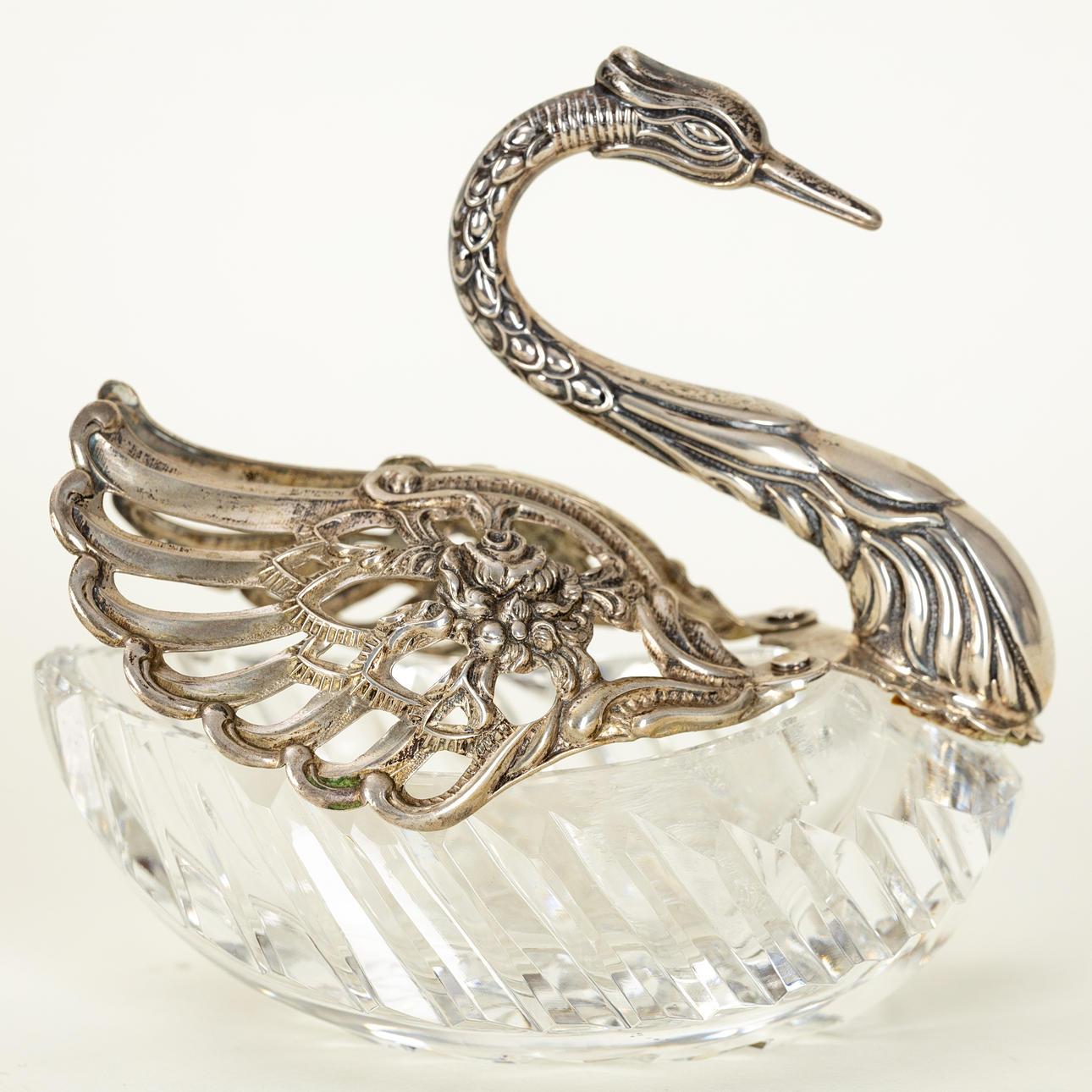 835 silver/ crystal, swan bowl, ALBO (Albert Bodemer), ca. 13 x 13 x 8 cm;