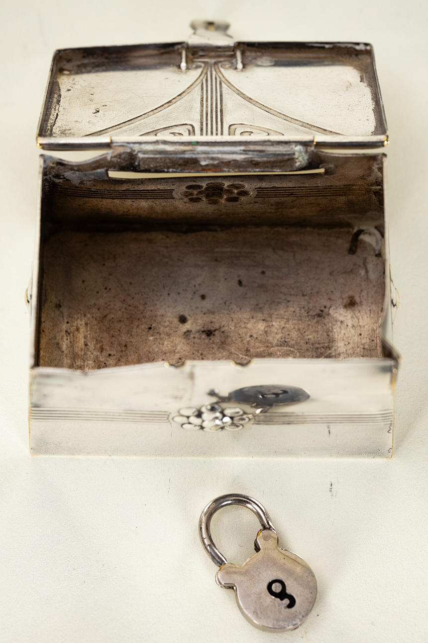 small metal box in Art Nouveau style, WMF, 4.5 x 7 x 4.8 cm;