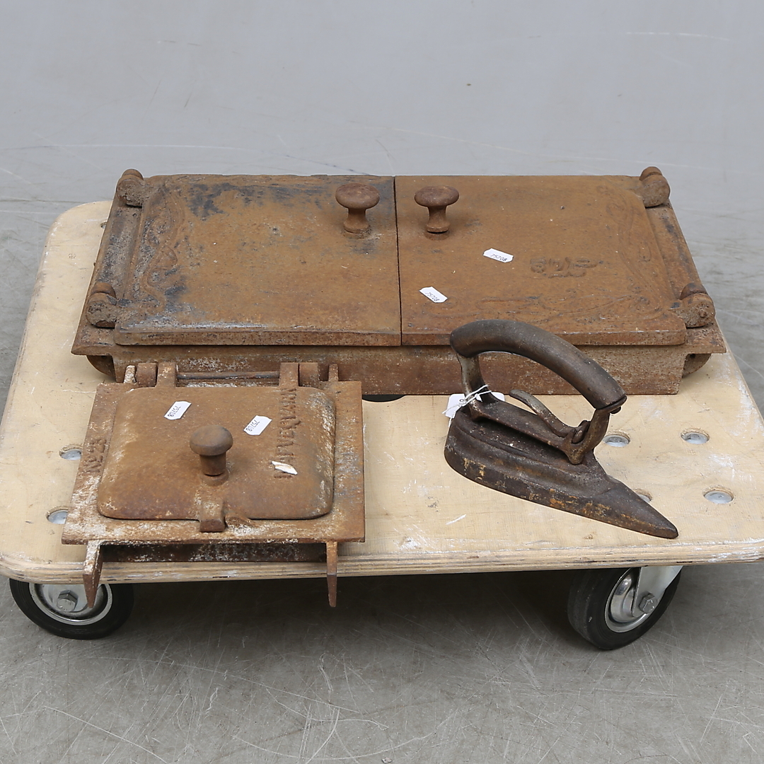 489118. CAST IRON OBJECTS, 3 parts, including Näverqvarn, 18/1900s.