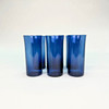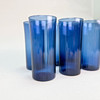 BLUE LONG DRINK GLASSES - 6pcs, fluted.