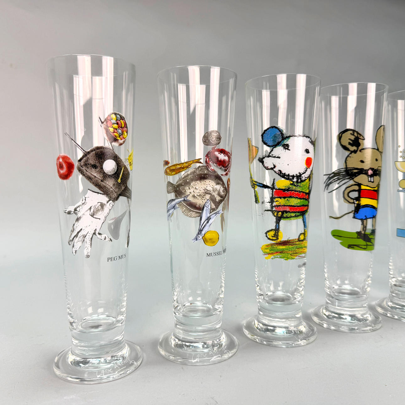 BEER GLASSES - 6 pcs Lasse Åberg, Signed.