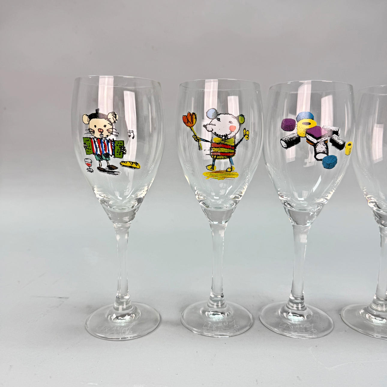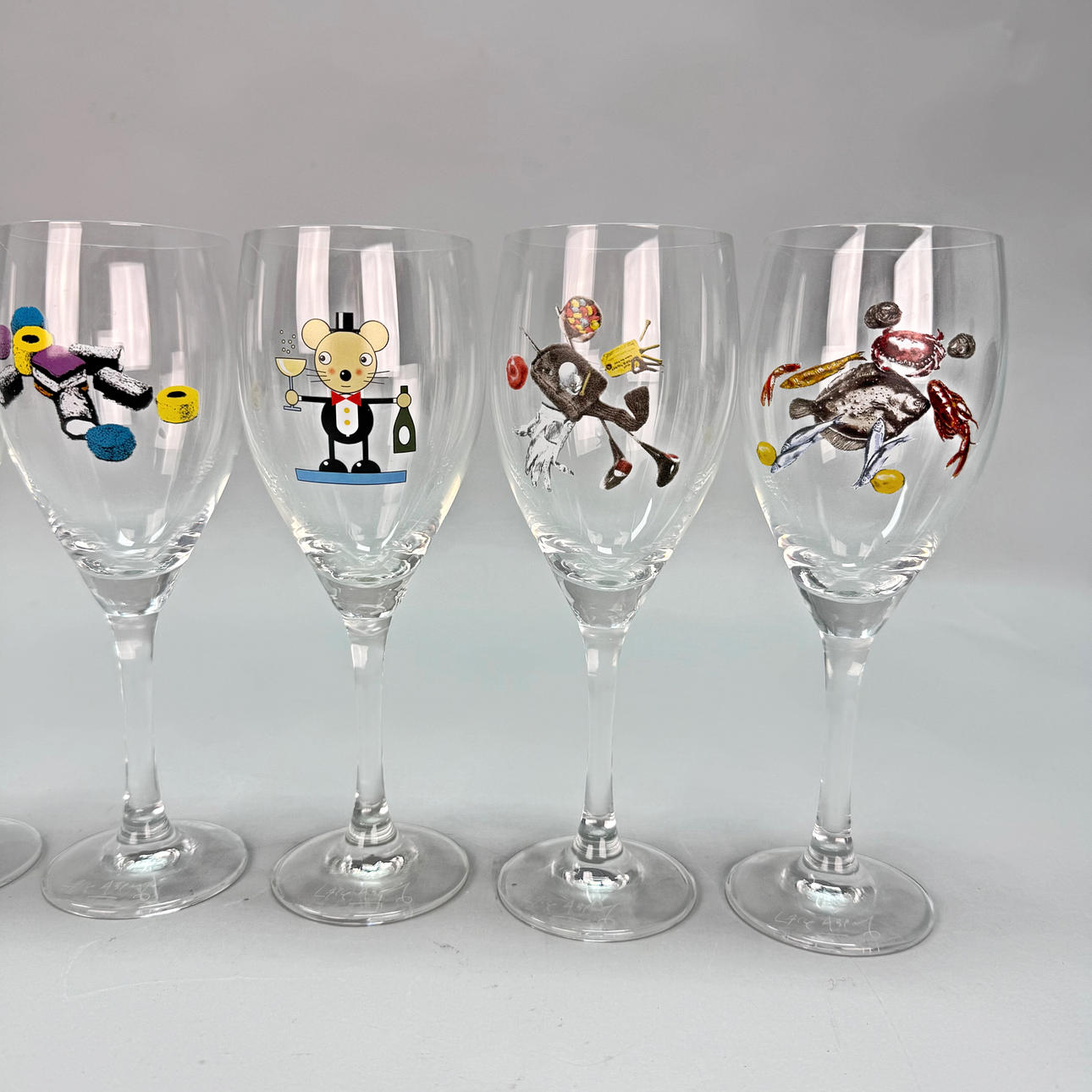 WINE GLASSES - 6 pcs Lasse Åberg, Signed.