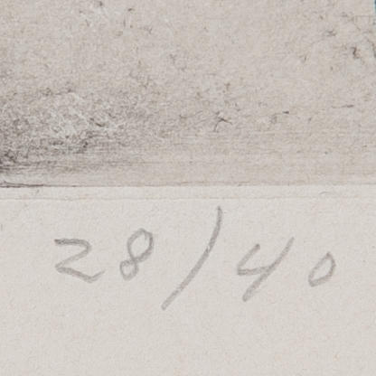 Colour etching, composition, signed, numbered 28/40. Frame dimensions 70 x 55 cm.