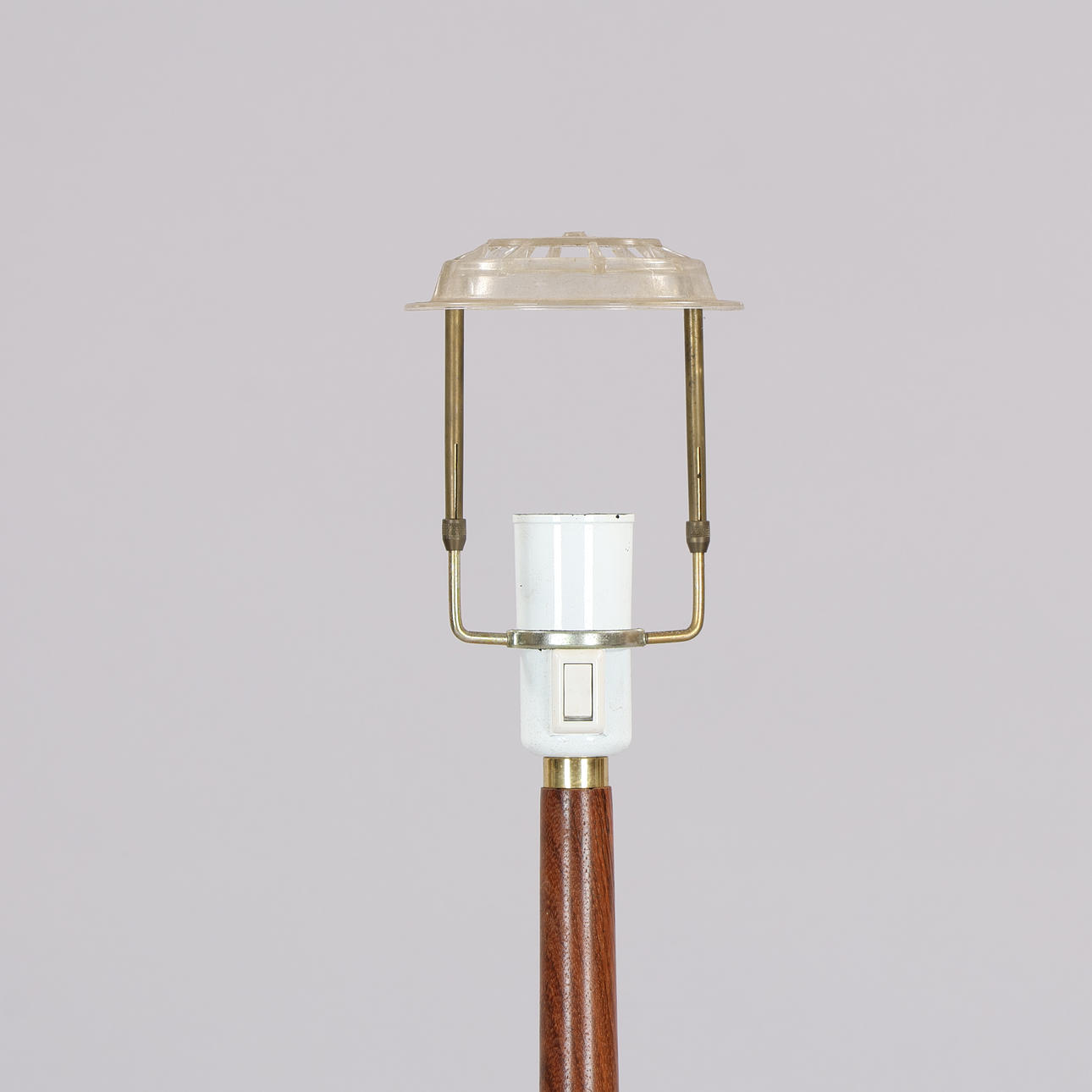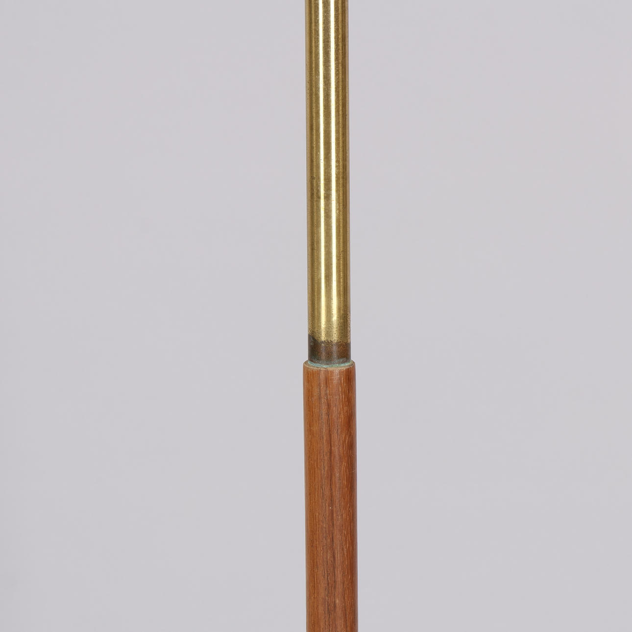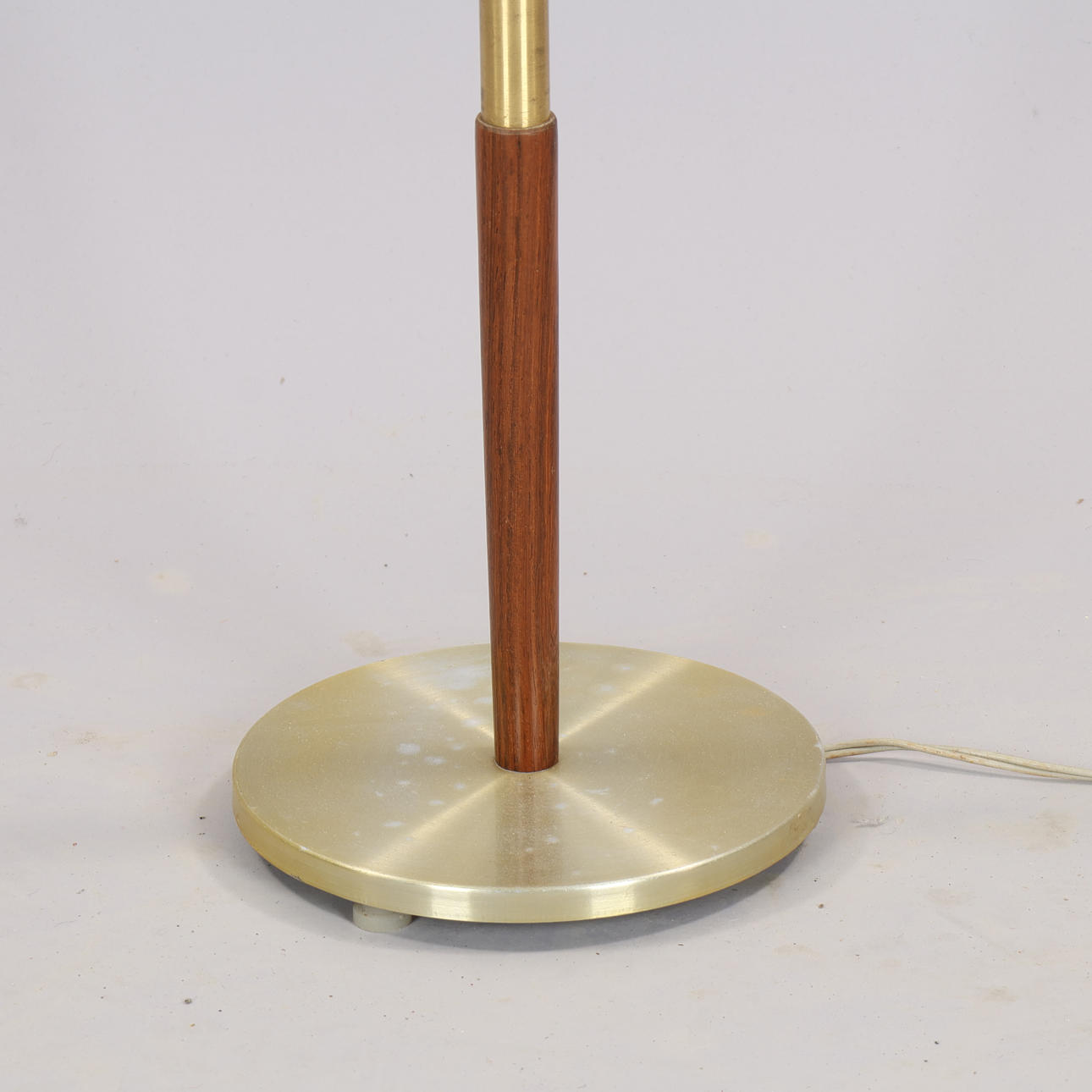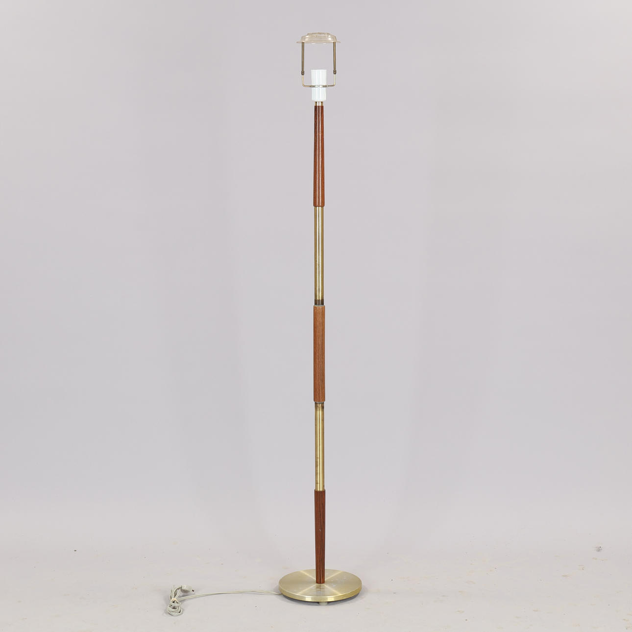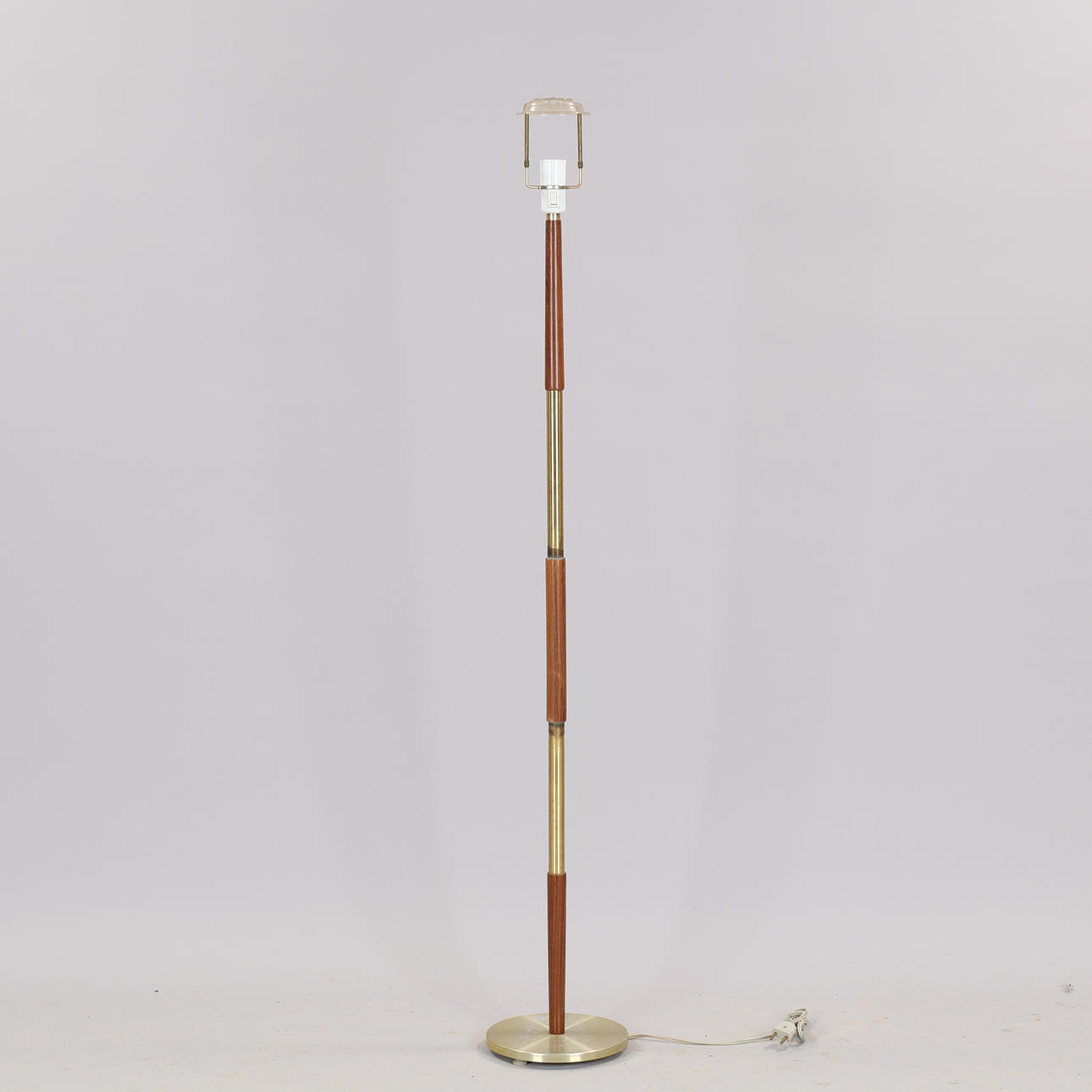 Brass and teak floor lamp, probably Sweden or Denmark, 1960s. H. 149 cm with screen holder.