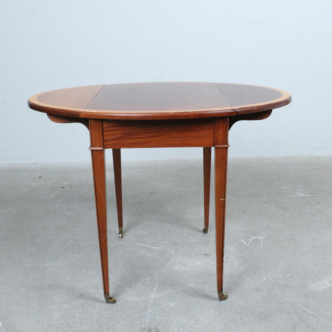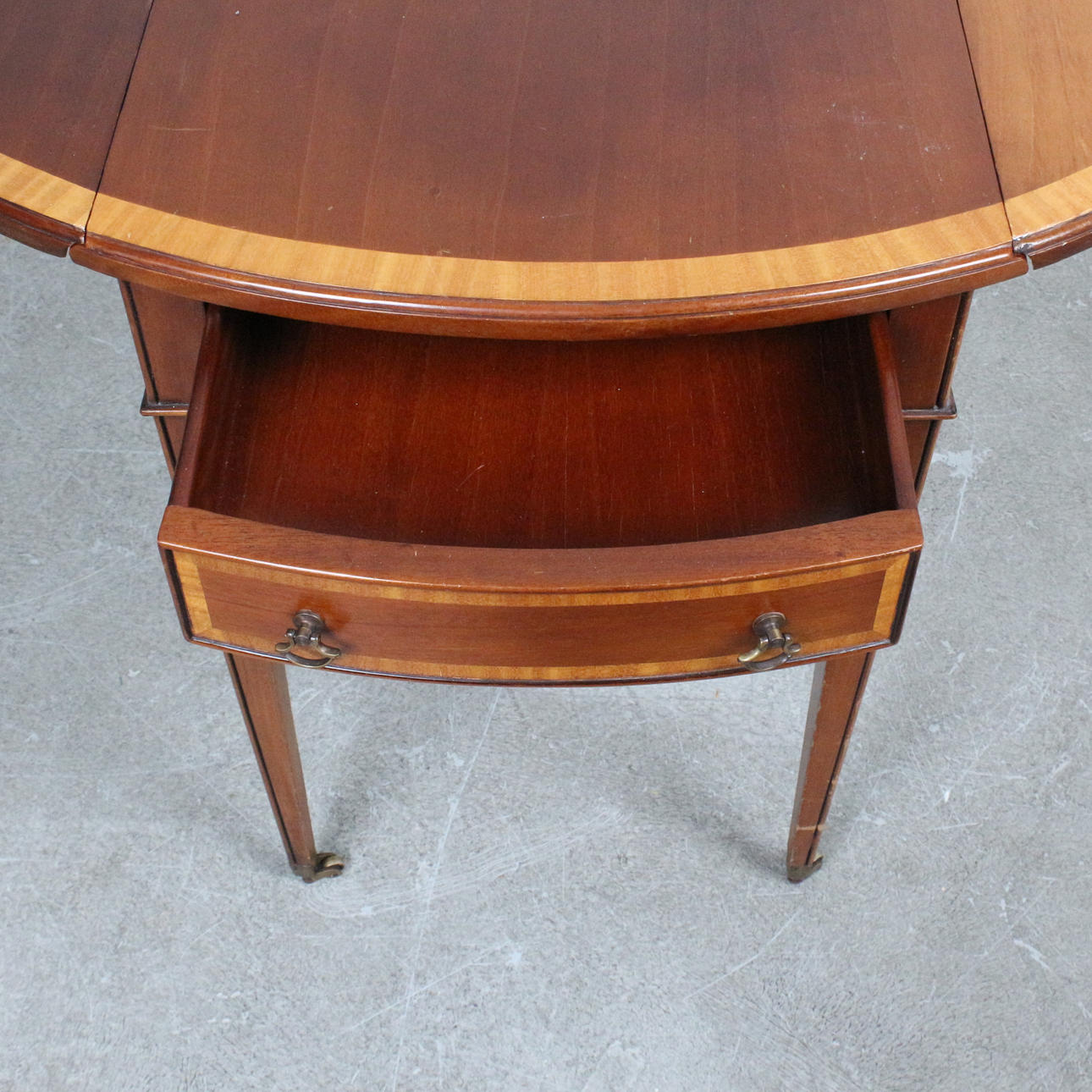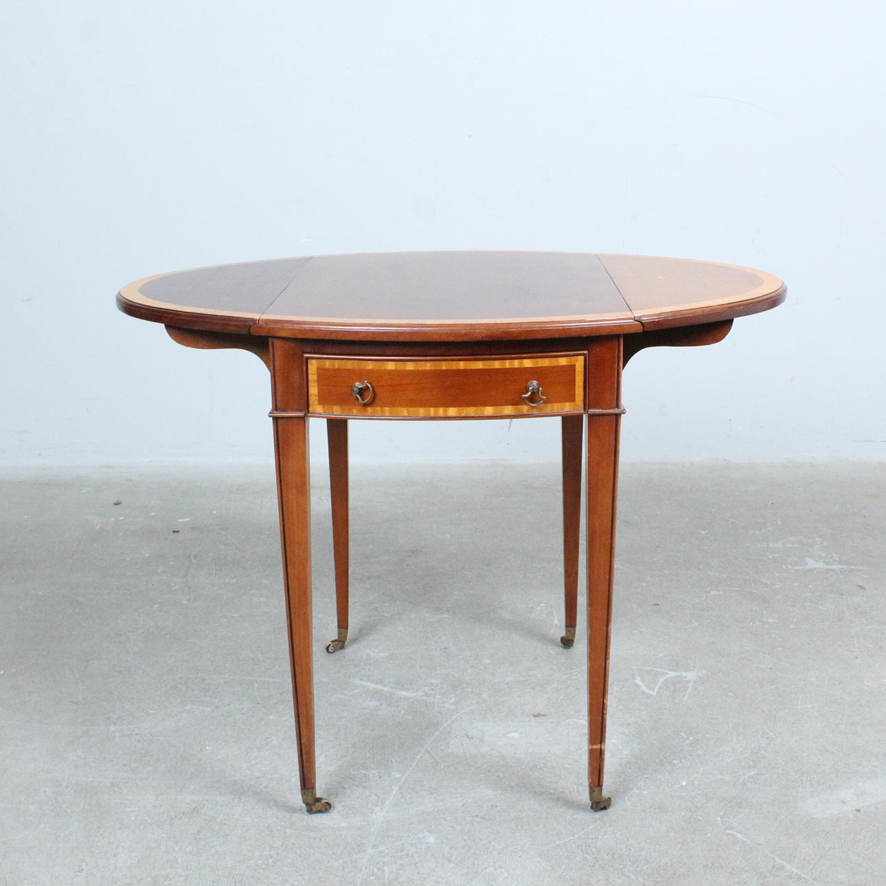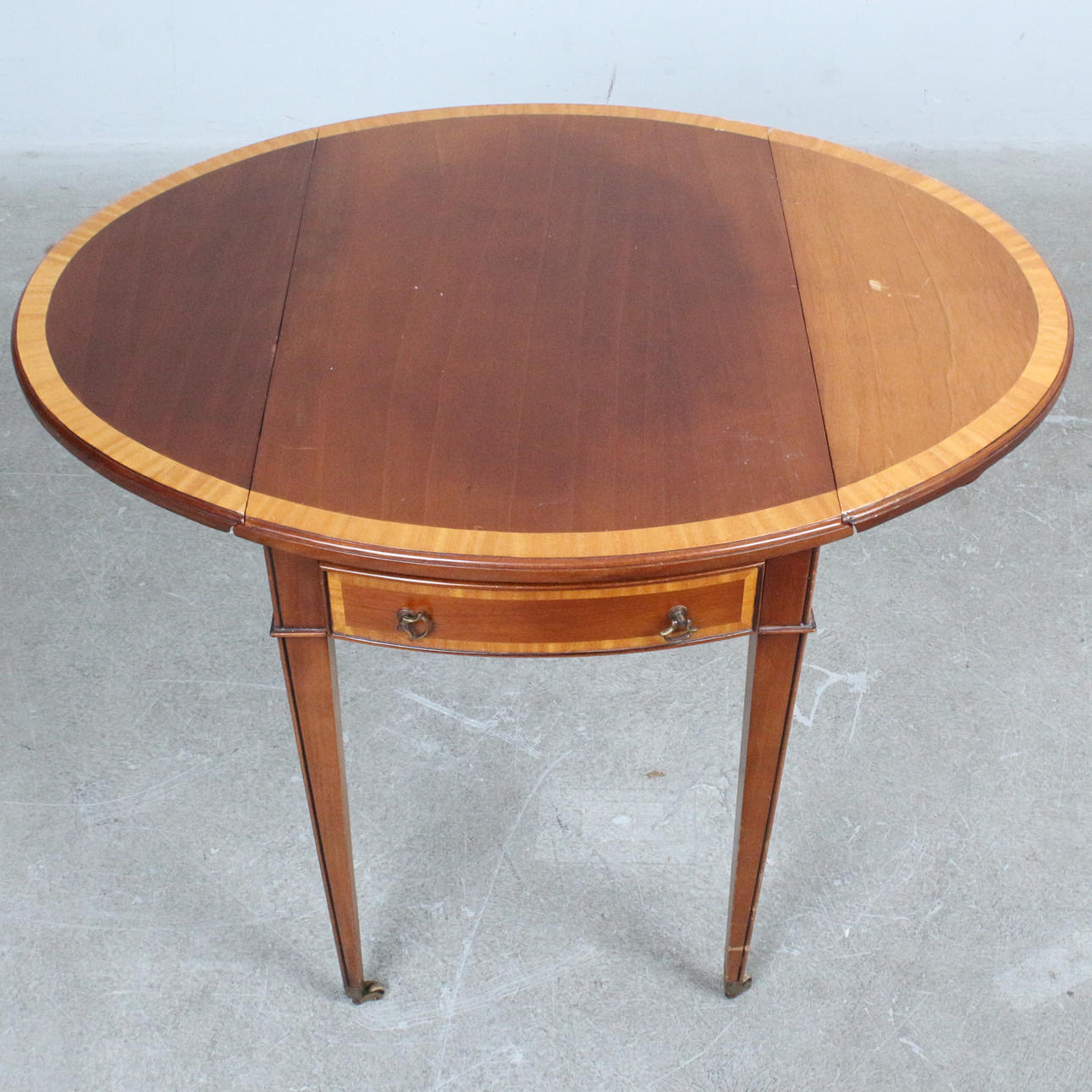 English Edwardian Pembroke table made of wood. With a drawer. Dimensions: H 64 cm B. 42.5 - 87.5 cm T. 65.5 cm.