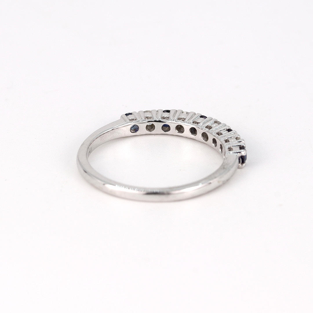 4892366. 18K WHITE GOLD DIAMOND & BLUE STONE SET RING.