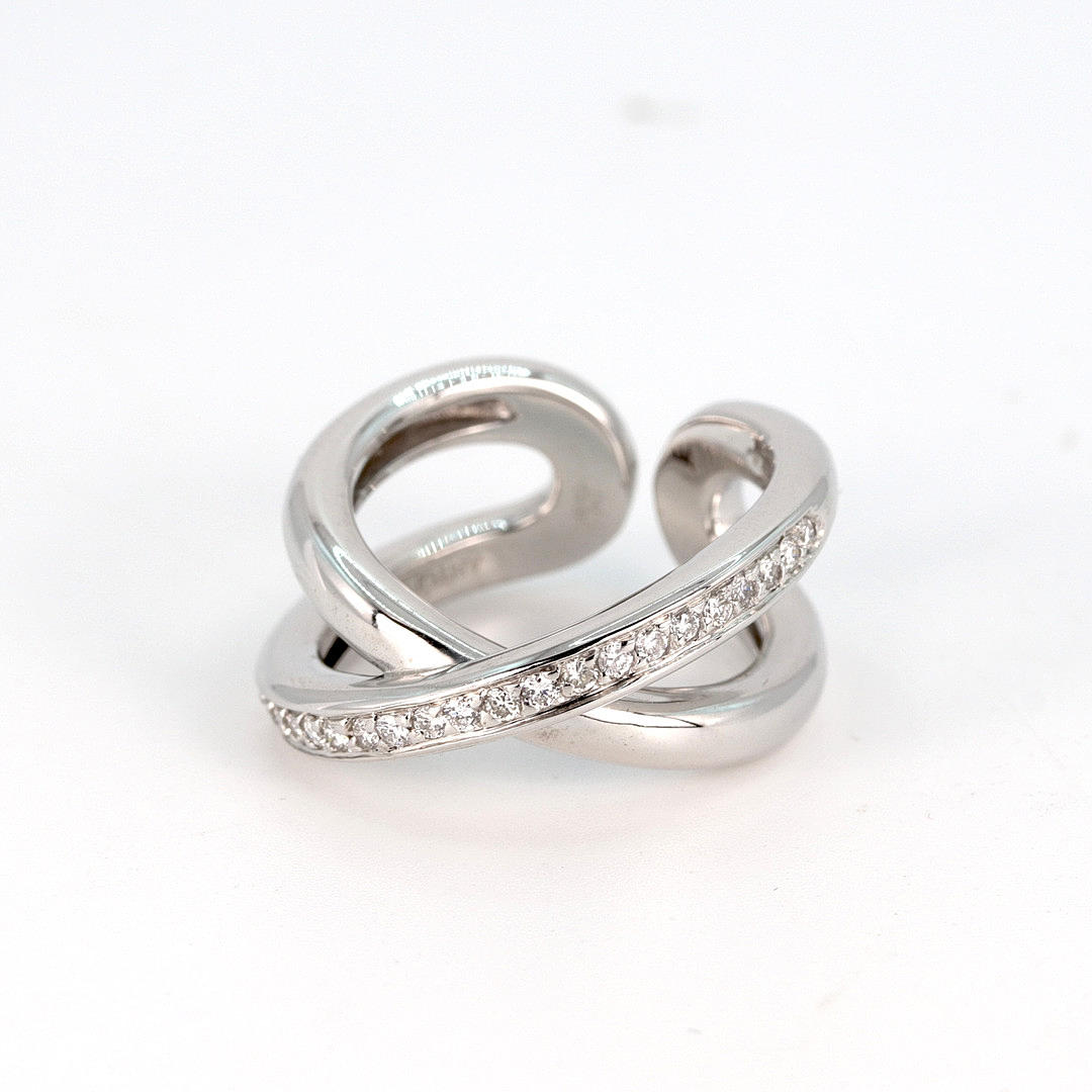 An 18K white gold corssover ring set with twenty round brilliant cut diamonds. Dia. total 0,44ct. approx.