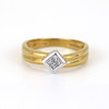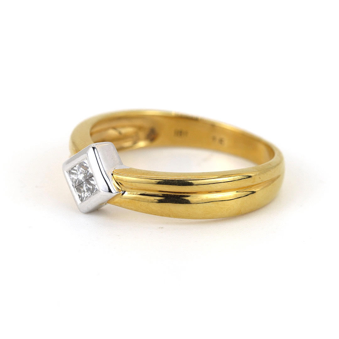 An 18ct white & yellow gold Ring set with four princess cut diamonds. Dia. total 0,15ct approx.