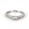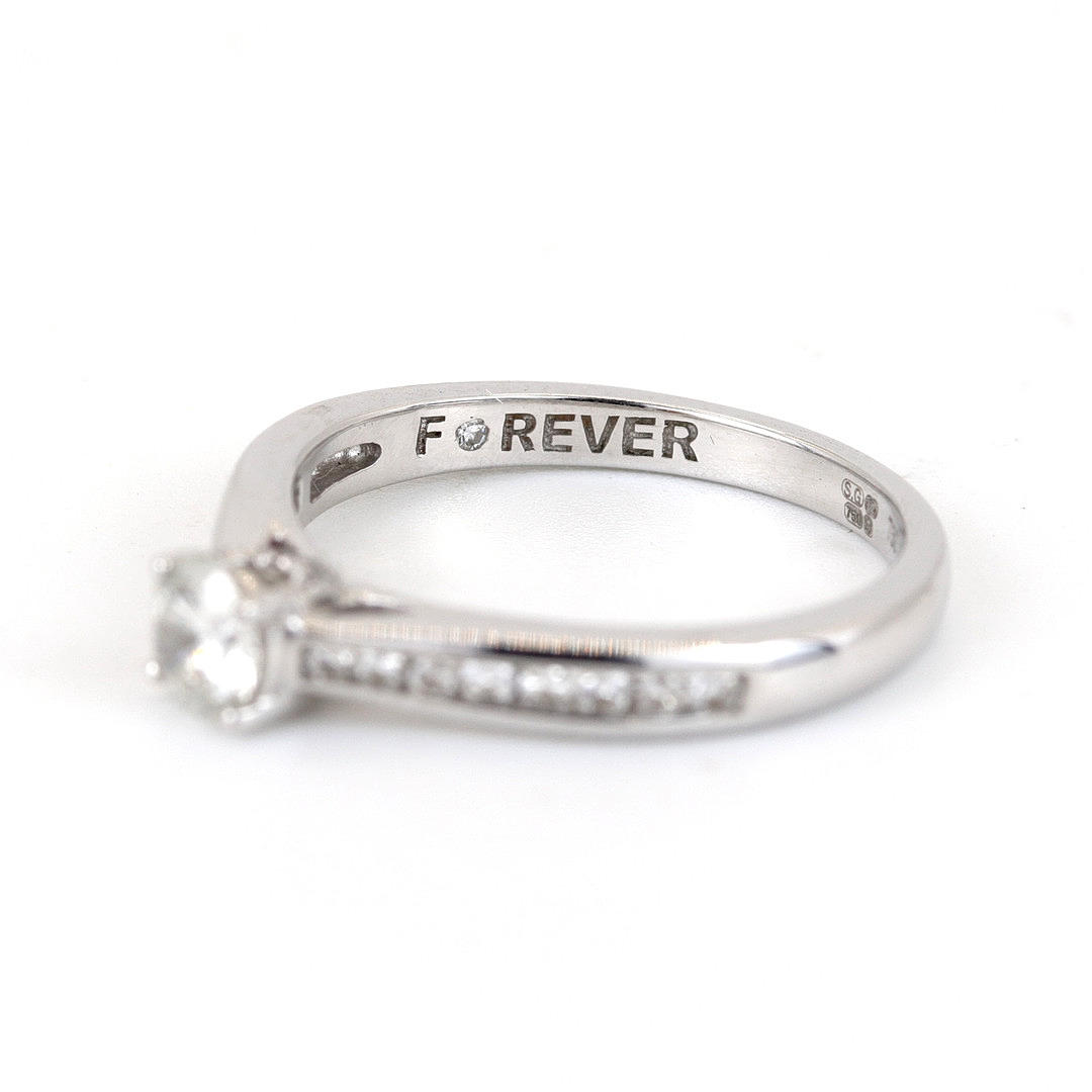 An 18K white gold diamond solitaire ring and diamonds to the sides.