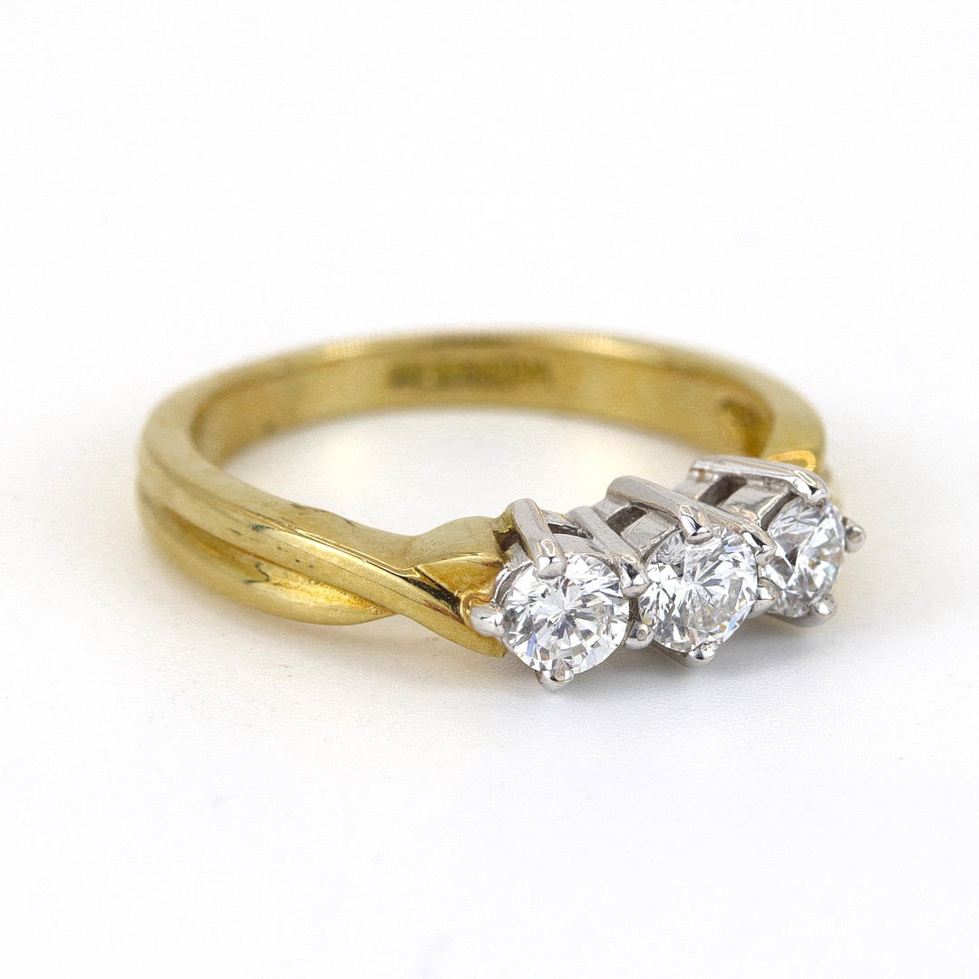 4892735. 18K WHITE & YELLOW GOLD THREE DIAMOND SET RING.