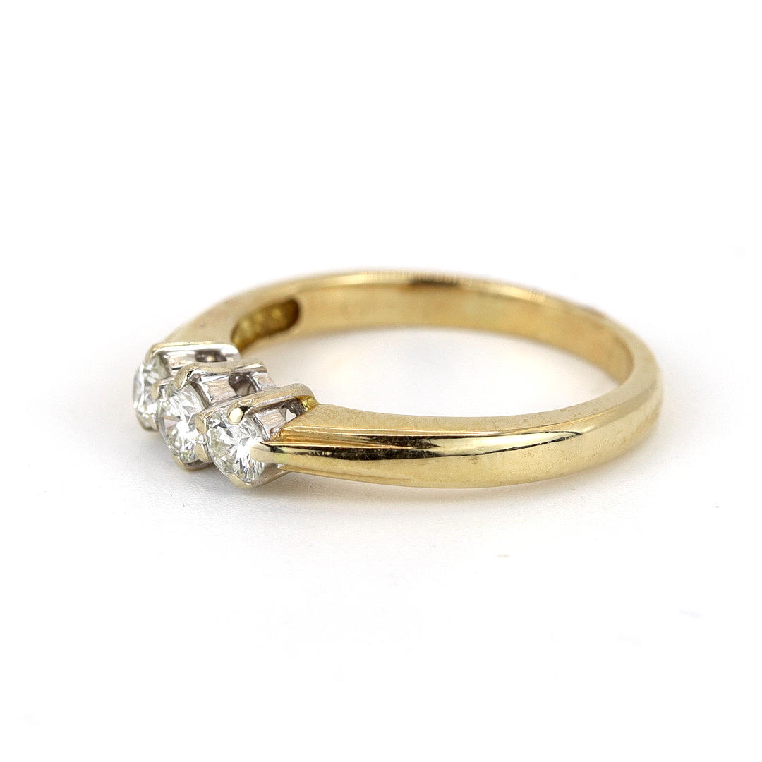 An 18K white & yellow gold ring set with three diamonds. Dia. total: 0,20ct. approx.