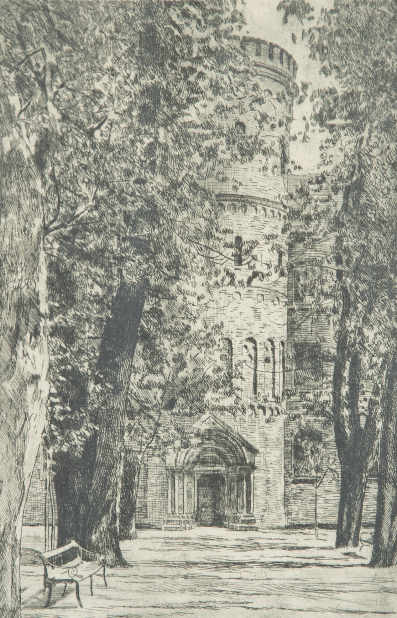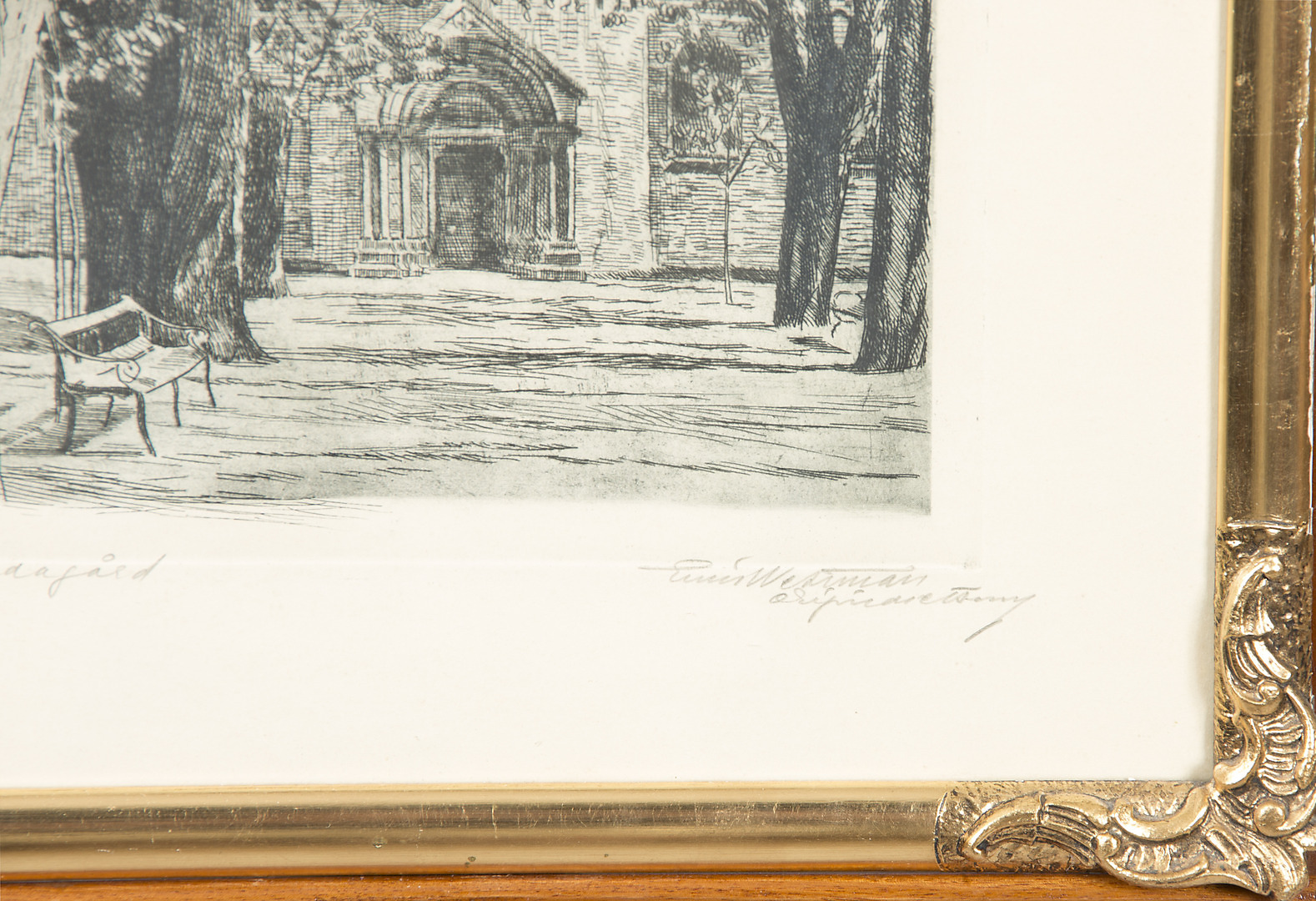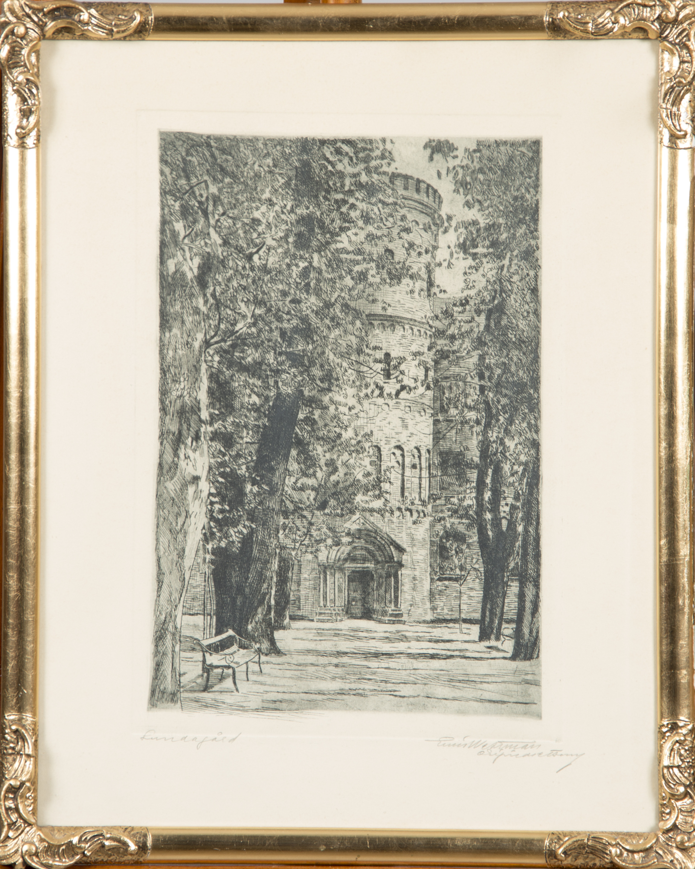 489324. EMIL WESTMAN. "Lundagård". etching, signed.