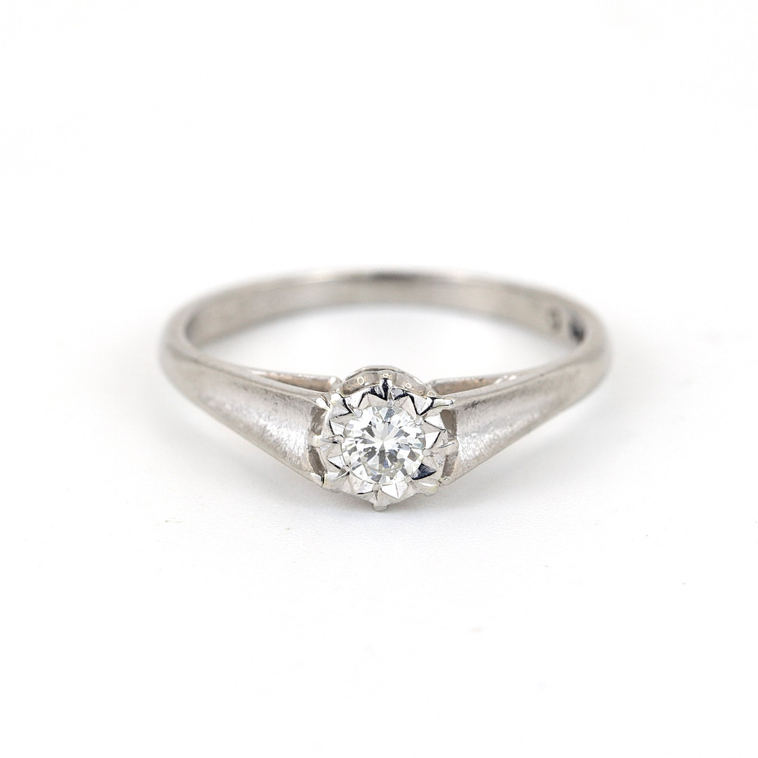 4893271. 18K WHITE GOLD DIAMOND SET SOLITAIRE RING.
