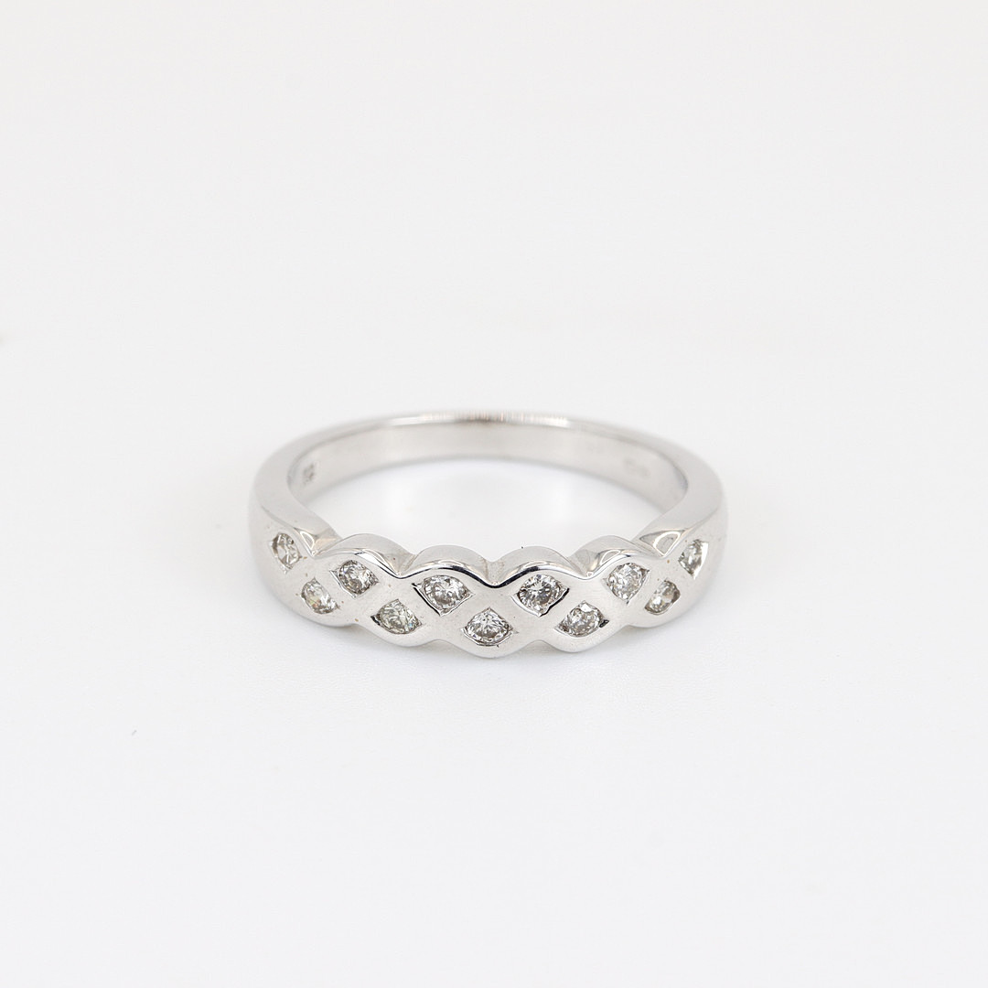 4893483. 9K WHITE GOLD DIAMOND SET RING.