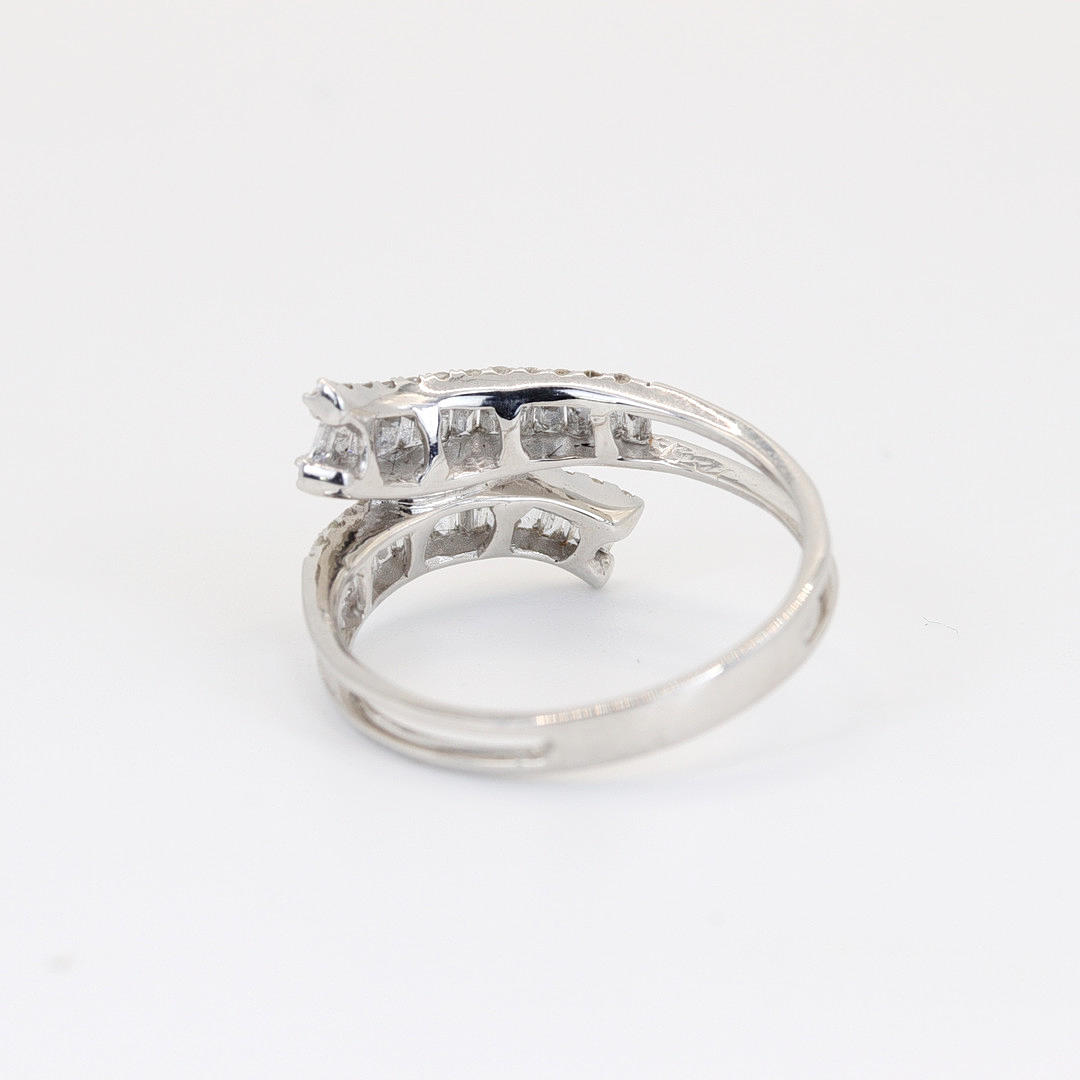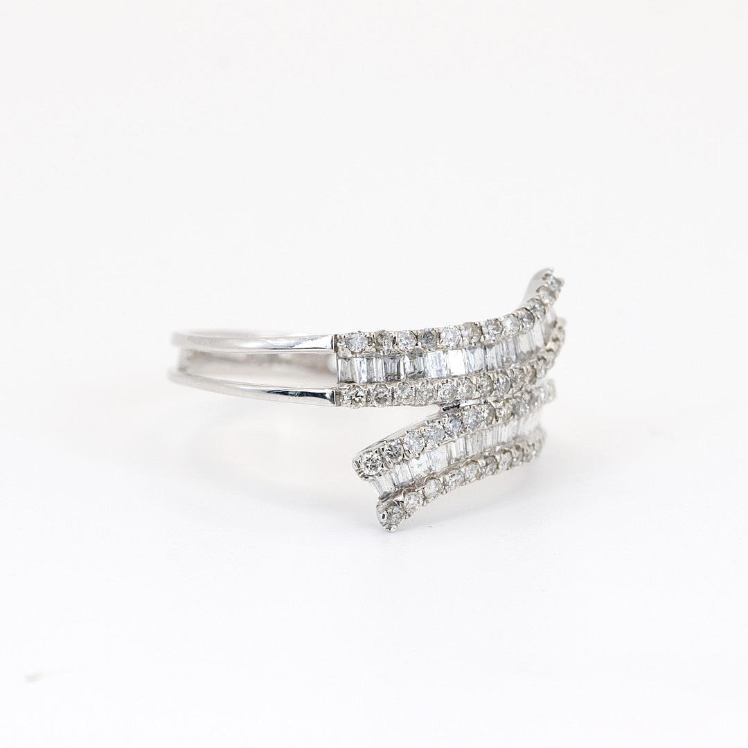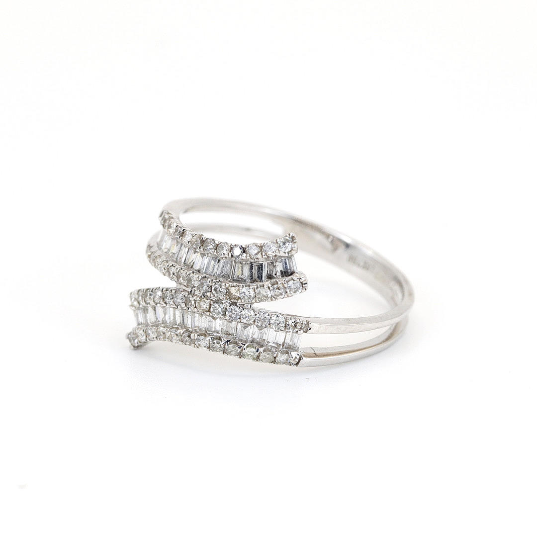 An 18K white gold ring set with round cut and baguette cut diamonds. Dia. total: 0,60ct. Colour: G-I. Clarity SI.