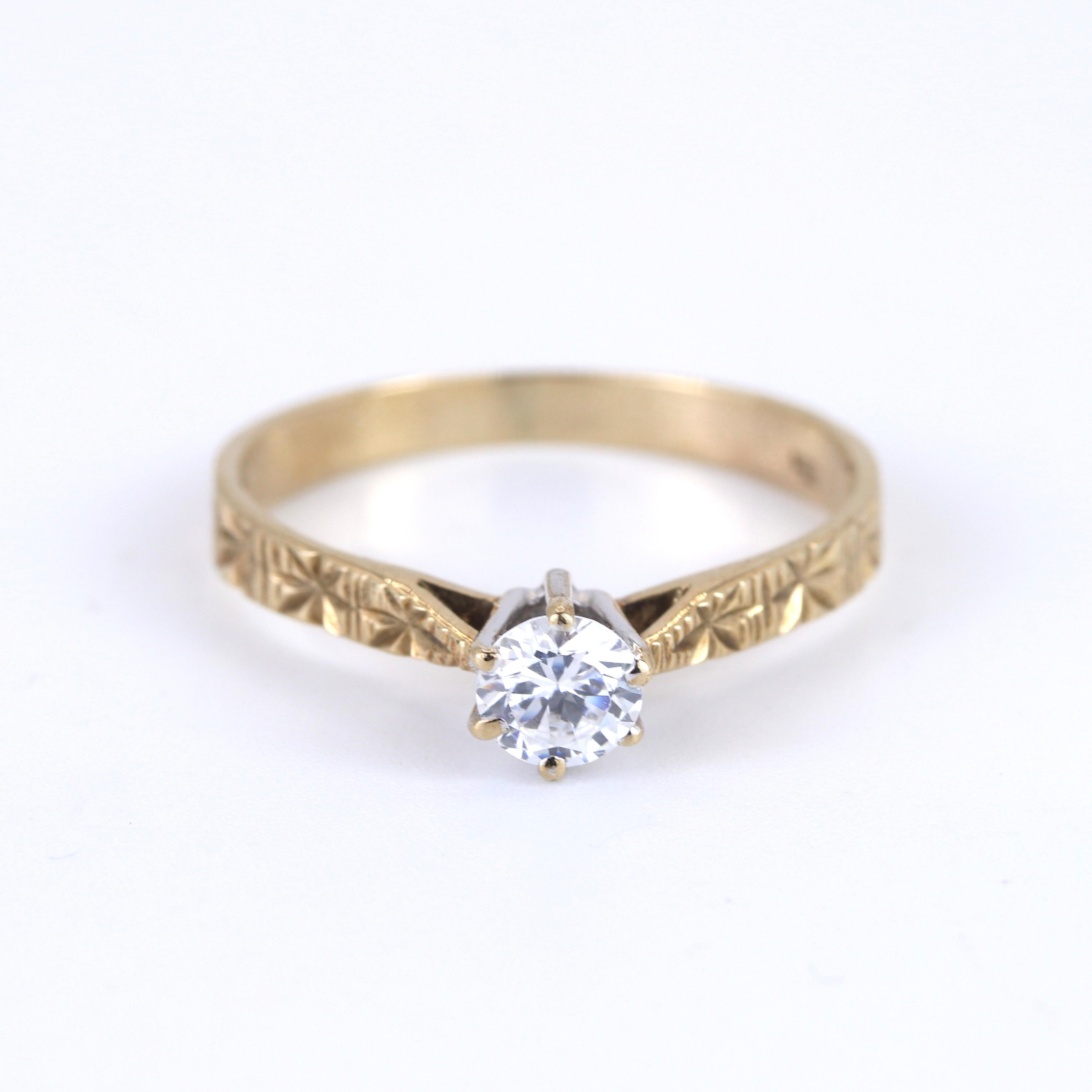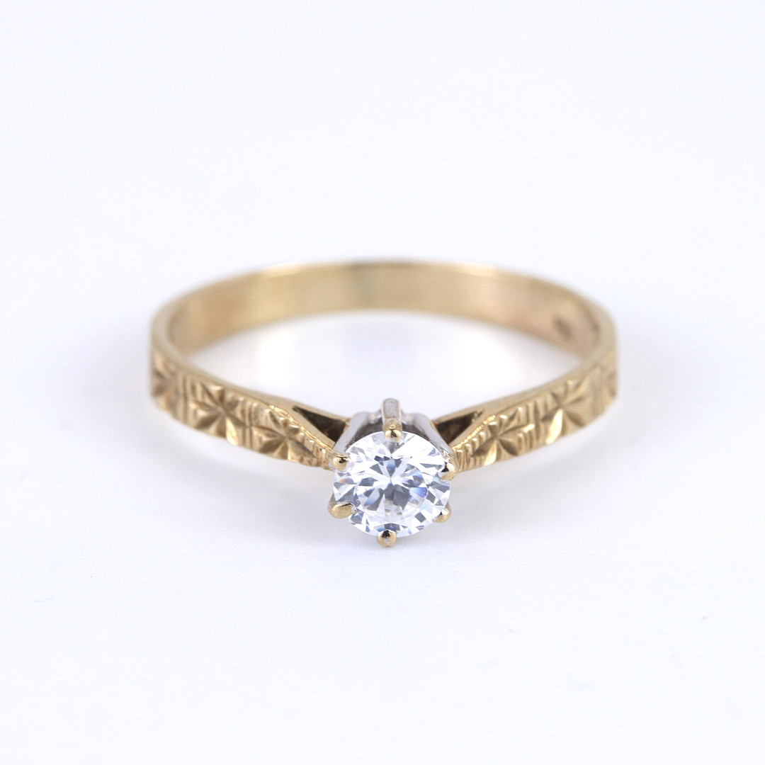 4894174. 9CT GOLD CUBIC ZIRCONIA SET SOLITAIRE RING.