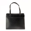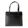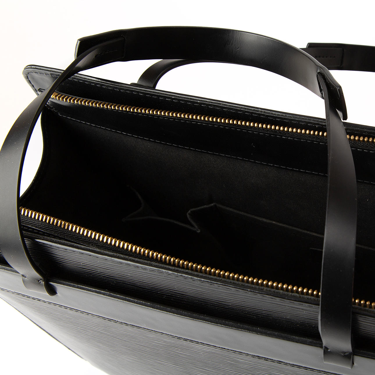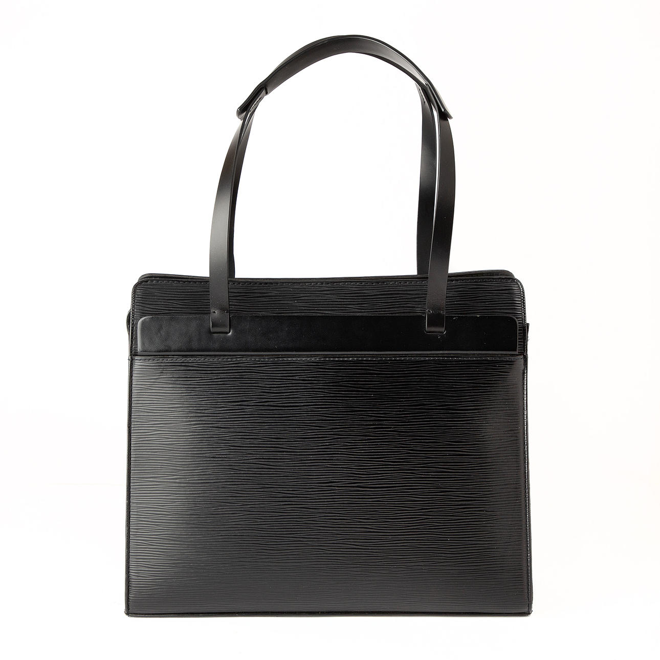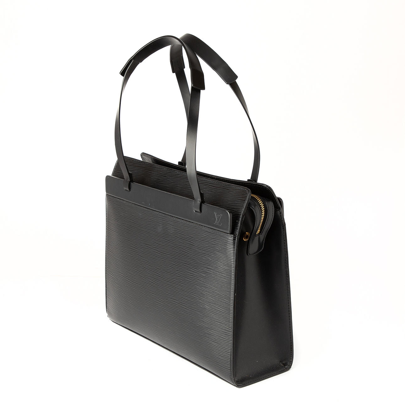 Larger compartment with zipper, two compartments on the outside. Carried with double handles. With embossed LV logo. Made in Spain.