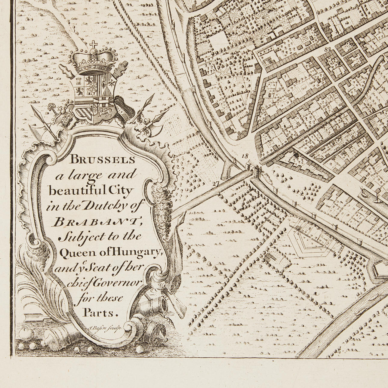 BASIRE, JAMES (engraver). Bruxelles is a large and beautiful city in the Dutch province of Brabant, subject to the queen of Hungary and the seat of her chief governor for these parts. For Mr Tindal's Continuation of Mr Rapin's History of England, c. 1750.