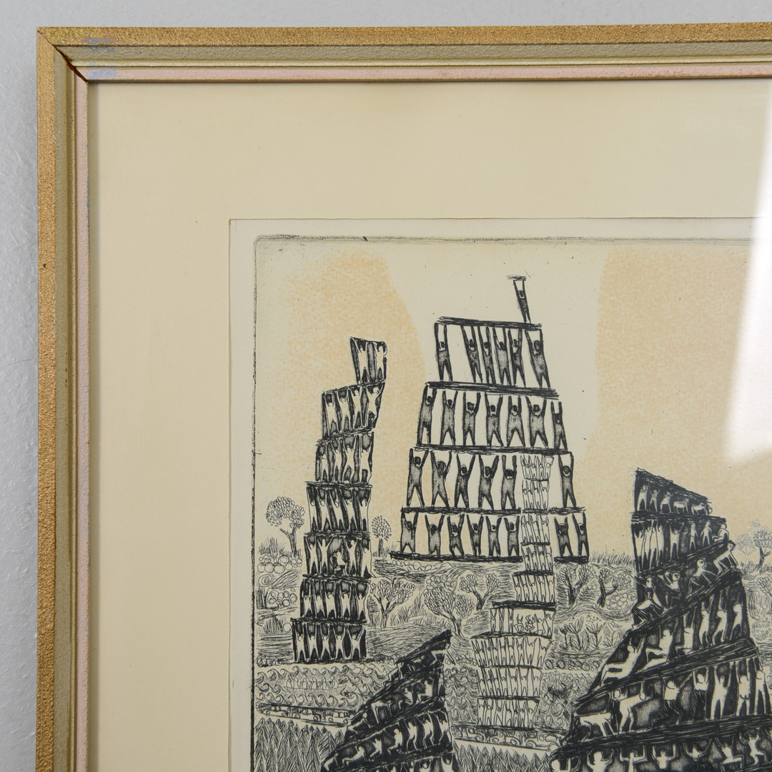 4896175. KERSTIN ABRAM-NILSSON. “Babelstorm”, etching, signed, numbered 307/310.