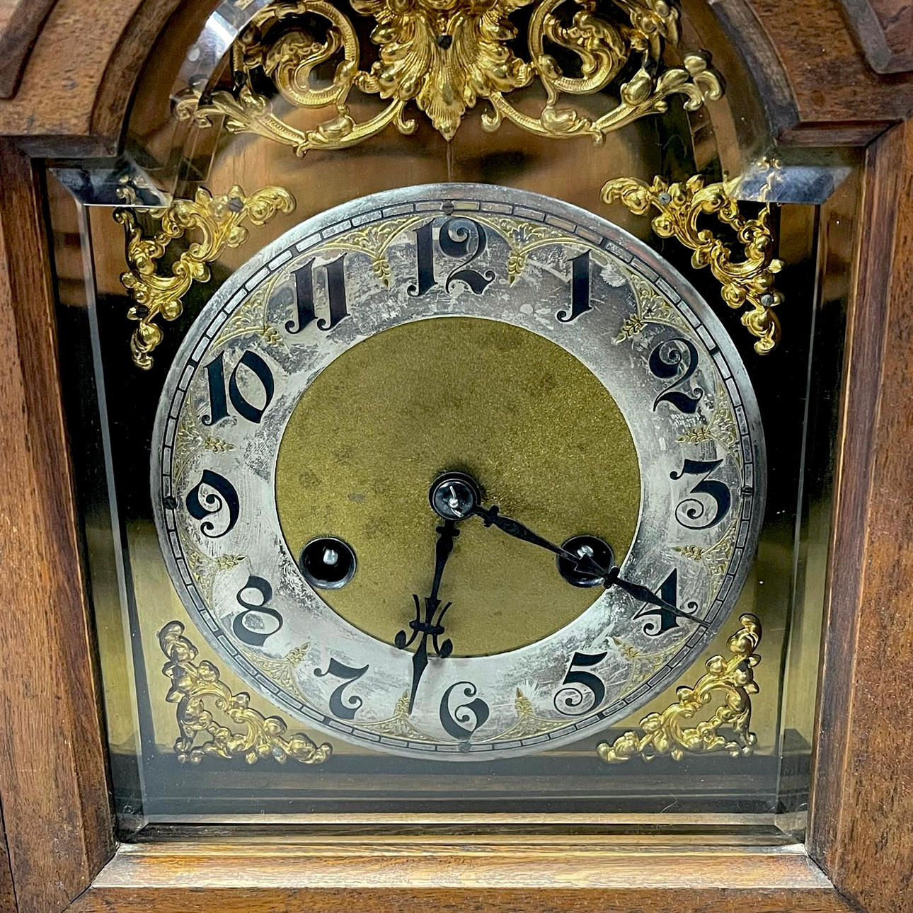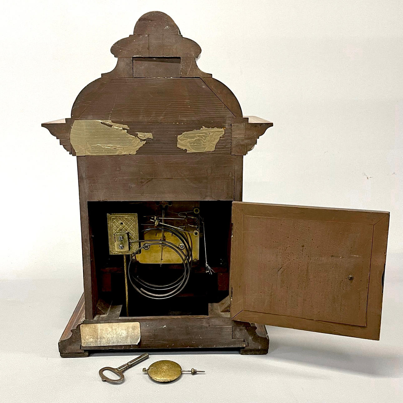 A 19thC striking oak bracket clock. 49 x 32 x 20 cms. Understood to be recently serviced.