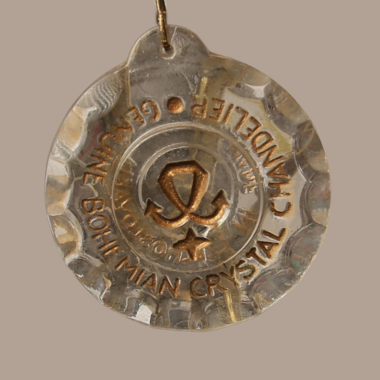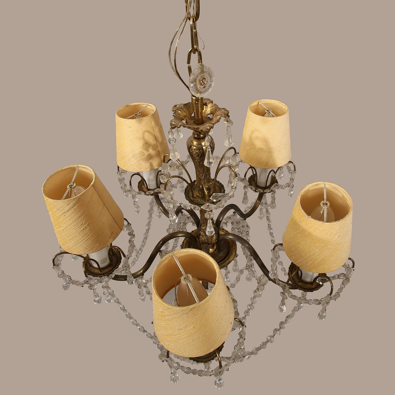 4897141. CEILING LAMP, brass, glass prisms, 5 light sources.