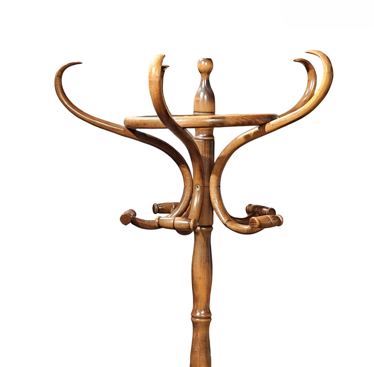 Thonet style coat rack in wood.